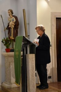 La comunità ha accolto con gioia don Giorgio, attraverso le parole di saluto dalla rappresentante del consiglio pastorale parrocchiale, che ha presentato la comunità parrocchiale, sottolienando il cammino pastorale e di fede nei momenti centrali dell’anno liturgico.