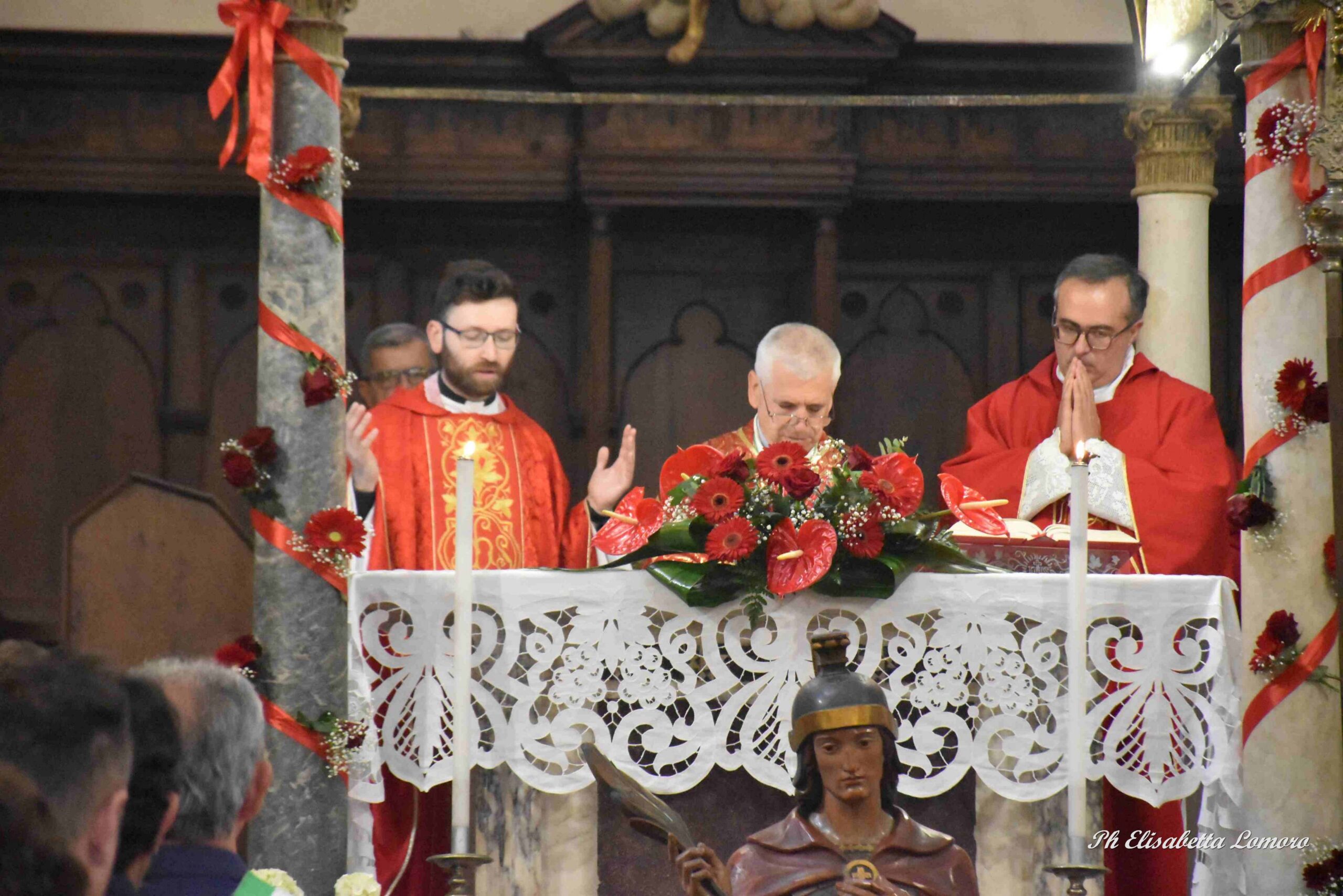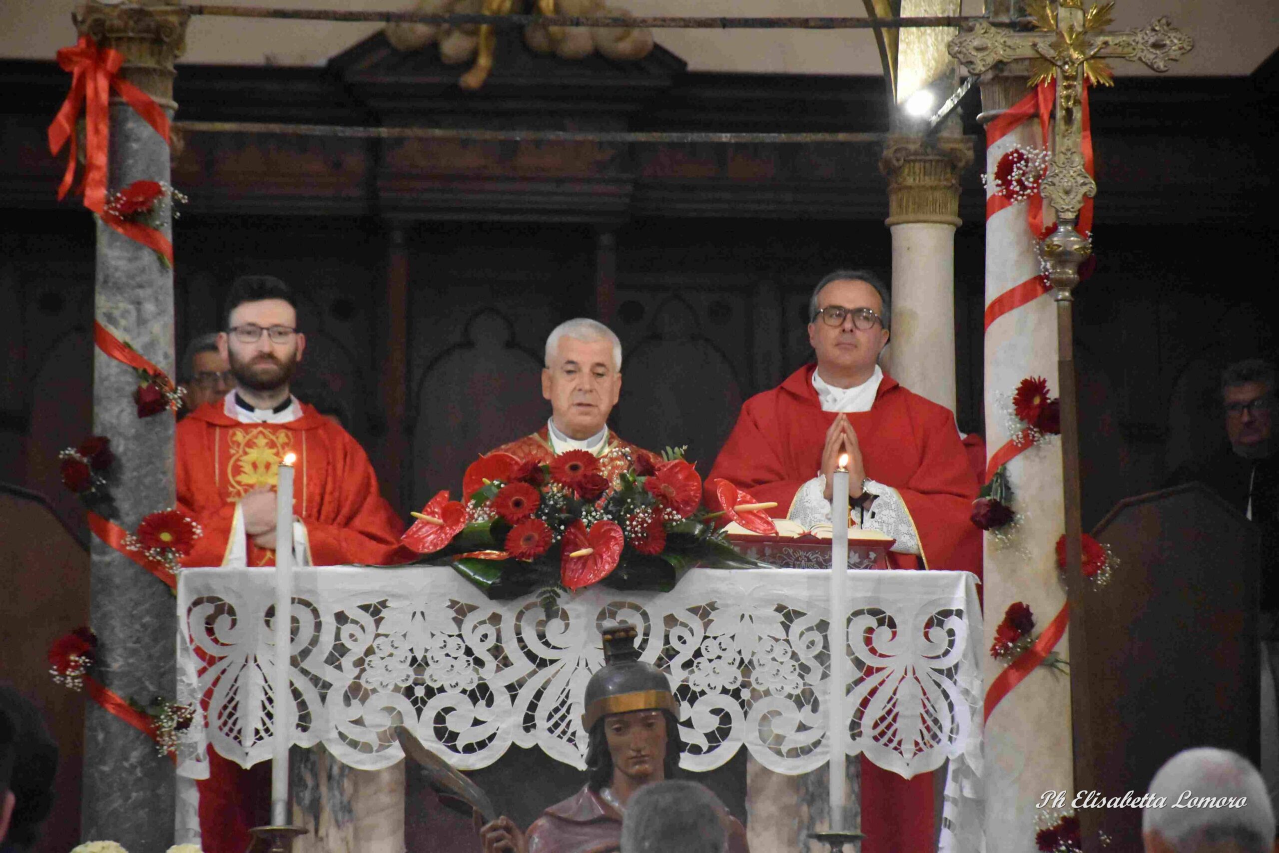 “In questa festa ricordiamo San Vittore che ha offerto la sua vita per Gesù – ha detto il vescovo Soddu –. Il martirio di Vittore germogliò in frutti abbandonanti di salvezza e nella civiltà dell’amore. La vita di san Vittore e santa Corona sono la testimonianza vivente della parola di Dio, questo è l’insegnamento grande che ci riguarda tutti, nella misura in cui vivo e testimonio la parola di Dio. Il nostro spirito deve essere sempre nelle mani di Dio. San Vittore era un giovane che ha dato la vita per la fede e se vogliamo come lui vincere, se vogliamo rivoluzionare il mondo, non bisogna partire dalle cose esterne o che sono lontane da noi, ma a partire dalla propria vita. Il coraggio dei giovani martiri ci riconsegnano quelle parole di amore e il senso della propria vita, e a noi è chiesta la capacità di vivere bene il nostro essere cristiani, di riporre nel Signore il nostro spirito, nel sacrario stesso di Dio, affinchè possiamo avere tutto il nutrimento ed essere segno di speranza, ossia persone che procedendo nella vita sono in grado di dare motivazione e sostanza alla speranza che è Gesù. Un’occasione per incontrare la salvezza che solo Gesù ci può dare, che può dare la vita nuova”.
