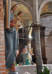 “In questa comunità di Colli sul Tevere, un insieme di parrocchie con 3 sacerdoti, si deve camminare insieme – ha detto il vescovo – lavorare insieme, sacerdoti e fedeli, ognuno con la sua identità, spiritualità e ruolo. Un cammino che può svolgersi nella formazione degli adulti, nella catechesi degli adulti, delle famiglie. Occorre approfondire e ascoltare insieme la parola del Signore e per gustare anche quanto è buono il Signore e quanto grande è la sua misericordia. In questa comunità c’è una grande ricchezza di confraternite, anche loro devono fare un cammino di fede attento alla parola di Dio e alla celebrazione dell’Eucarestia e ai loro carismi specifici. Una raccomandazione particolare sacerdoti, perché vivano in comunione e si prodighino nel servizio pastorale alle persone di questo territorio, ed insieme camminino collaborando e lasciando che i sacerdoti facciano solo quello che è proprio del loro ministero. Uno degli aspetti più difficili più carenti in tutta la diocesi e la pastorale giovanile, sono pochissimi i giovani che sono accanto alle nostre comunità. Bisogna fare qualcosa di più per loro, perché tutto ciò che faremo per creare spazi e camminare insieme ai giovani, sarà di grande beneficio per i giovani stessi, perchè imparino ad amare e conoscere il Signore. Infine, invito questa comunità a seguire il proprio carisma che è dato dal nome della parrocchia di Santa Maria Assunta. Maria deve stare al centro, la spiritualità Mariana di amore, di servizio, di gioia, attenzione alla parola di Dio e agli altri e i Santi Martiri Corona, Vittore e Fulgenzio, tutto ciò deve essere sempre più approfondito è vissuto nello spirito del Vangelo”.