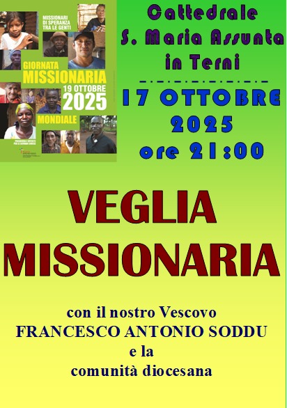 Vari i momenti di riflessione, animazione e la liturgici in questo Mese Missionario che culmineranno con la Veglia Missionaria Diocesana nella Cattedrale di Terni, Venerdì 19 ottobre alle ore 21.00 presieduta dal Vescovo Francesco Soddu.