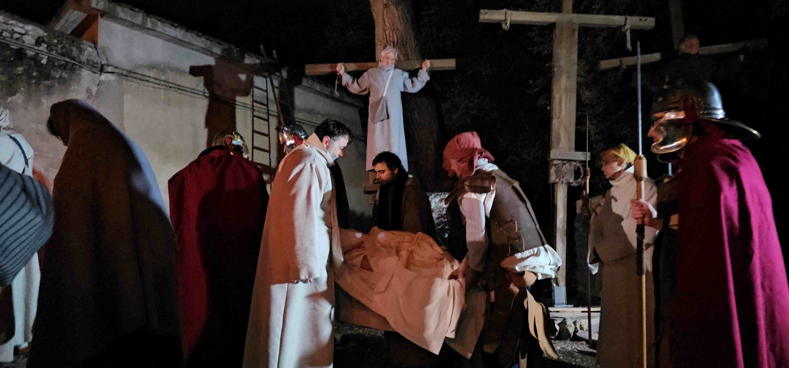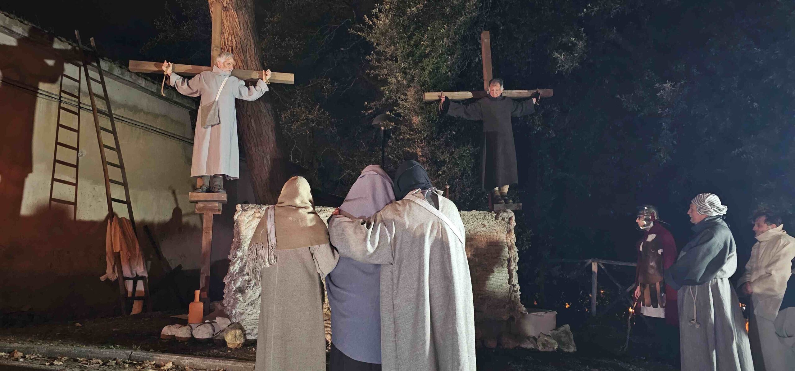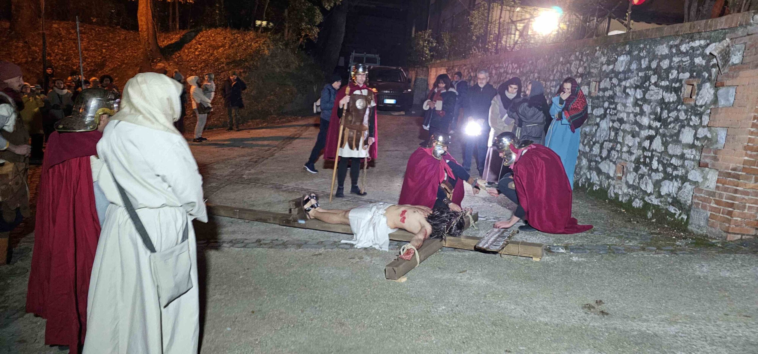Venerdì 27 marzo alle ore 21 presso il parco delle Grazie a Terni è stata celebrata la Via Crucis vivente, organizzata dalla Confraternita di San Giuseppe e San Francesco di Paola. La suggestiva cornice del Parco storico delle Grazie ha ospitato il momento liturgico, che unisce spiritualità e tradizione, presieduto dall’amministratore diocesano della diocesi di Terni-Narni-Amelia mons. Francesco Antonio Soddu. La particolarità dell’appuntamento di quest’anno risiede nella rappresentazione in costume animata dal gruppo del teatro di Santa Maria delle Grazie: le scene della Passione di Cristo sono state rievocate da figuranti, ed hanno offerto ai fedeli e ai presenti un forte impatto visivo e un profondo invito alla meditazione lungo le stazioni del percorso. Ha accompagnato la preghiera, con testi tratti dalle opere di Maria Valtorta, padre Angelo Gatto, cappellano dell’ospedale Santa Maria e assistente spirituale della Confraternita. La regia della rappresentazione è a cura di Barbara Cinaglia.