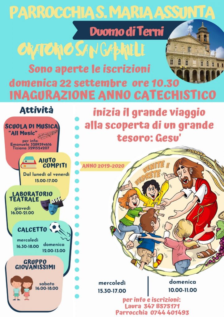 Domenica 22 settembre ore 10.30 apertura dell’anno catechistico e delle attività dell’oratorio San Gabriele