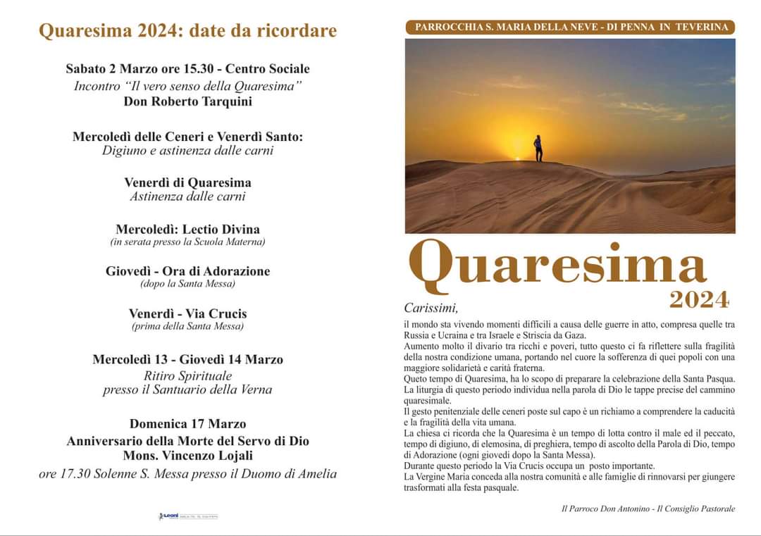 Parrocchia Penna in Teverina – appuntamenti della Quaresima 2024