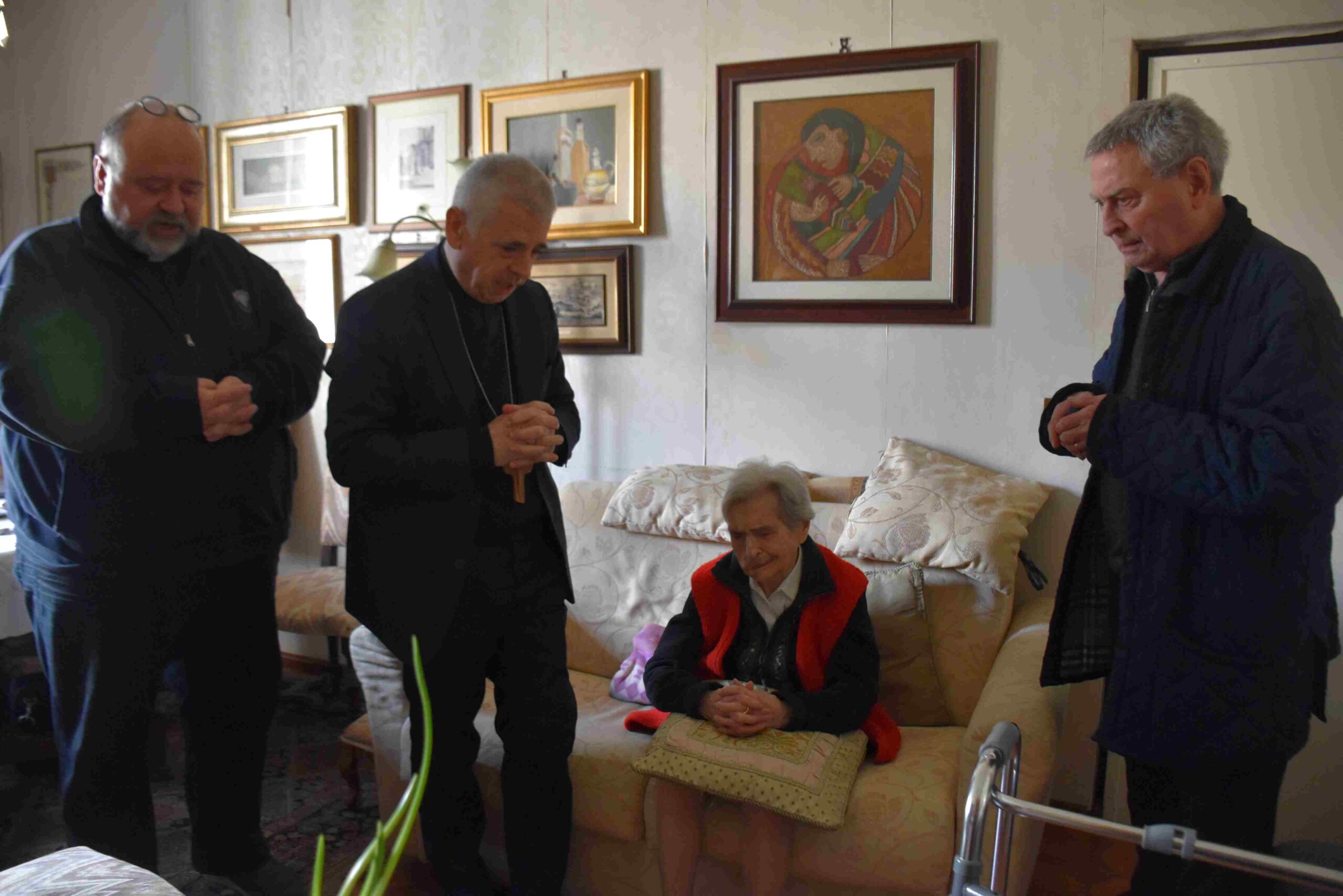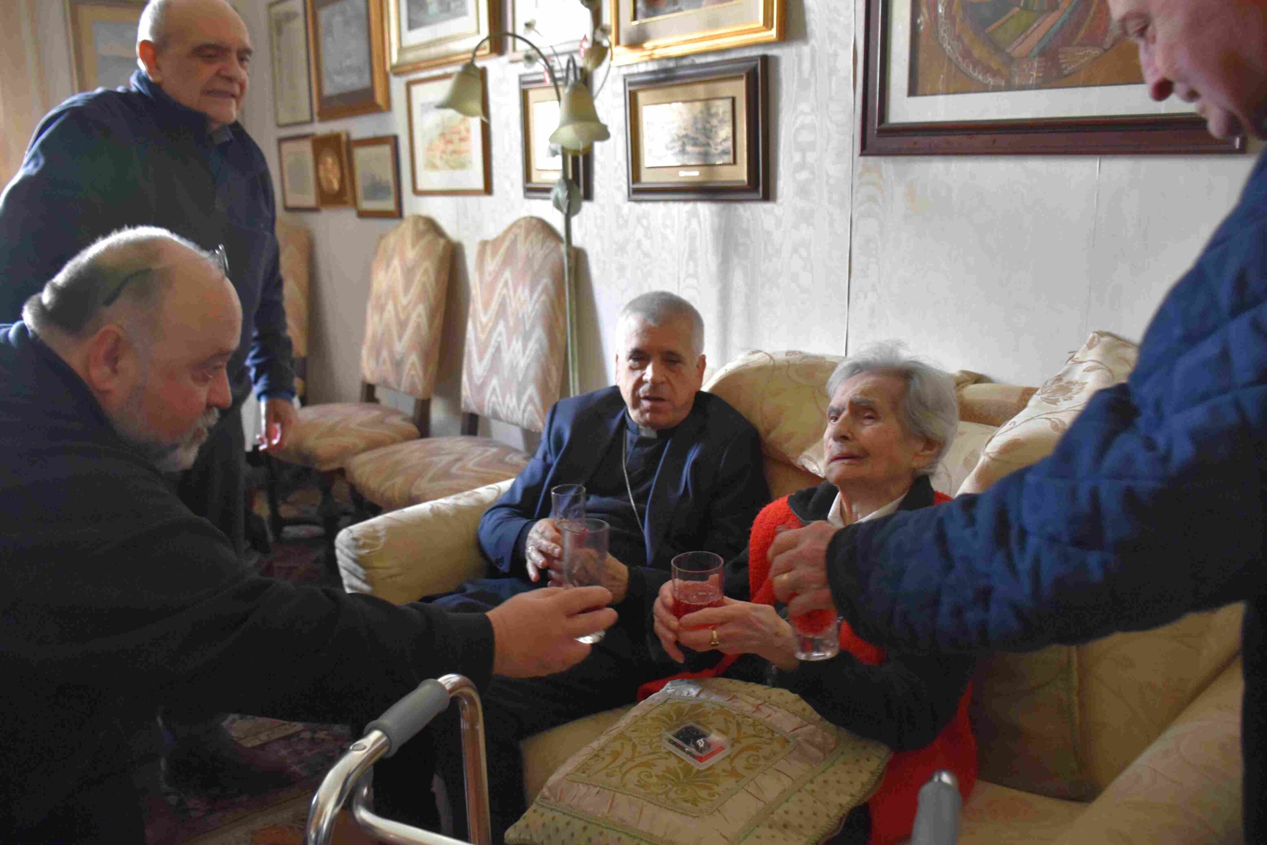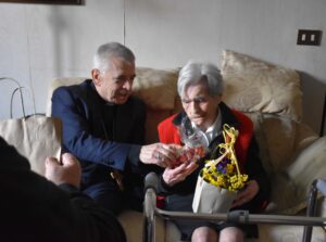 Auguri del vescovo Francesco Soddu per i 104 della signora Caterina Morganti. Domenica 3 marzo accompagnato dal parroco don Franco Semenza e dal diacono Marcello Del Fabbro, il vescovo ha visitato la signora Caterina alla quale sono stati portati in dono per il compleanno un rosario, una composizione floreale e dei dolci. Commossa la signora Caterina ha ringraziato per la visita e i doni, insieme al figlio Mauro, ricordando la sua presenza assidua nella parrocchia insieme al marito fino a qualche anno fa. Un bel momento di festa, di preghiera e condivisione con le persone più anziane che sono ricchezza di memoria e testimonianza di vita e di fede per l’intera comunità diocesana