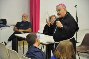 Dialogando con i ragazzi nell’auditorium del complesso scolastico, ha spiegato il significato della visita pastorale e ha risposto alle domande dei ragazzi sul ministero del vescovo, sulla sua esperienza di sacerdote e in primo luogo di frate francescano, sull’accoglienza e importanza per ciascuno di seguire la propria vocazione e il proprio impegno per realizzare una società e un mondo migliore. Ricordando la festa di San Francesco, celebrata ieri, il vescovo ha concluso leggendo un passo del Cantico delle Creature ricordando come San Francesco considerava ogni essere vivente e ogni parte del Creato come fratello fino a chiamare sorella anche la morte.