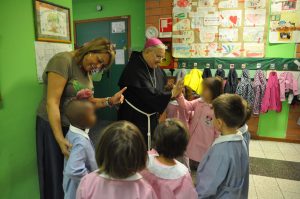Il vescovo ha salutato i ragazzi delle ultime classi della scuola primaria e alcuni rappresentanti delle classi della scuola secondaria di primo grado ed infine i bambini della scuola dell’infanzia.