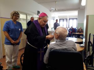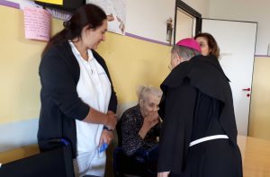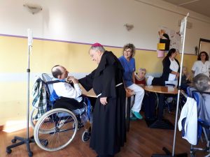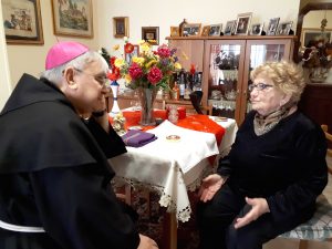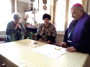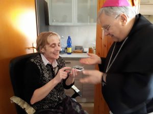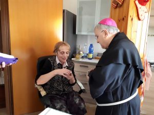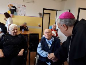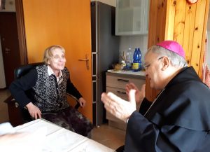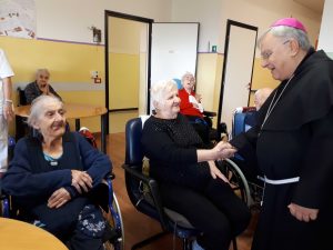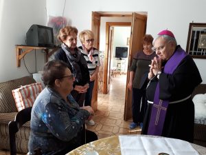 Il vescovo ha anche visitato la residenza per anziani “Soggiorno Terza Età” salutando gli ospiti e operatori e portando parole di speranza e conforto. successivamente ha visitato alcune anziani e malati nelle loro case alle quali ha donato un rosario.