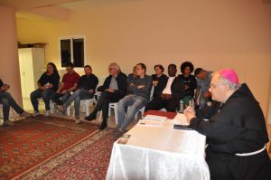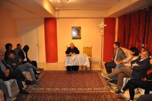Successivamente si è tenuto l’incontro con la comunità del cammino neocatecumenale, composta da circa venti persone che da diversi anni seguono il cammino nella parrocchia, e il gruppo di coppie di sposi del cammino di formazione verso il matrimonio. In parrocchia questo tipo di cammino coinvolge le coppie nella preparazione al matrimonio e nell’accompagnamento nel dopo matrimonio con la costituzione di un gruppo di famiglie che mensilmente si ritrovano per condividere esperienze, catechesi e formazione cristiana.