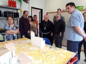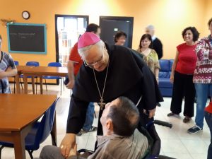 Al centro diurno ha salutato tutti gli ospiti e visitato i vari laboratori di presepi, ceramica, falegnameria, bricolage e attività motoria complimentandosi per quanto viene fatto per le persone disabili e per il clima familiare che si vive all’interno del centro. Un servizio che ha spesso collaborato con la parrocchia in varie attività estive e di integrazione con i bambini che è stato un occasione per un reciproco accrescimento e condivisione, con l’auspicio che si possa rinnovare la collaborazione e di festa insieme. Al vescovo hanno donato un presepe realizzato dagli ospiti e operatori.