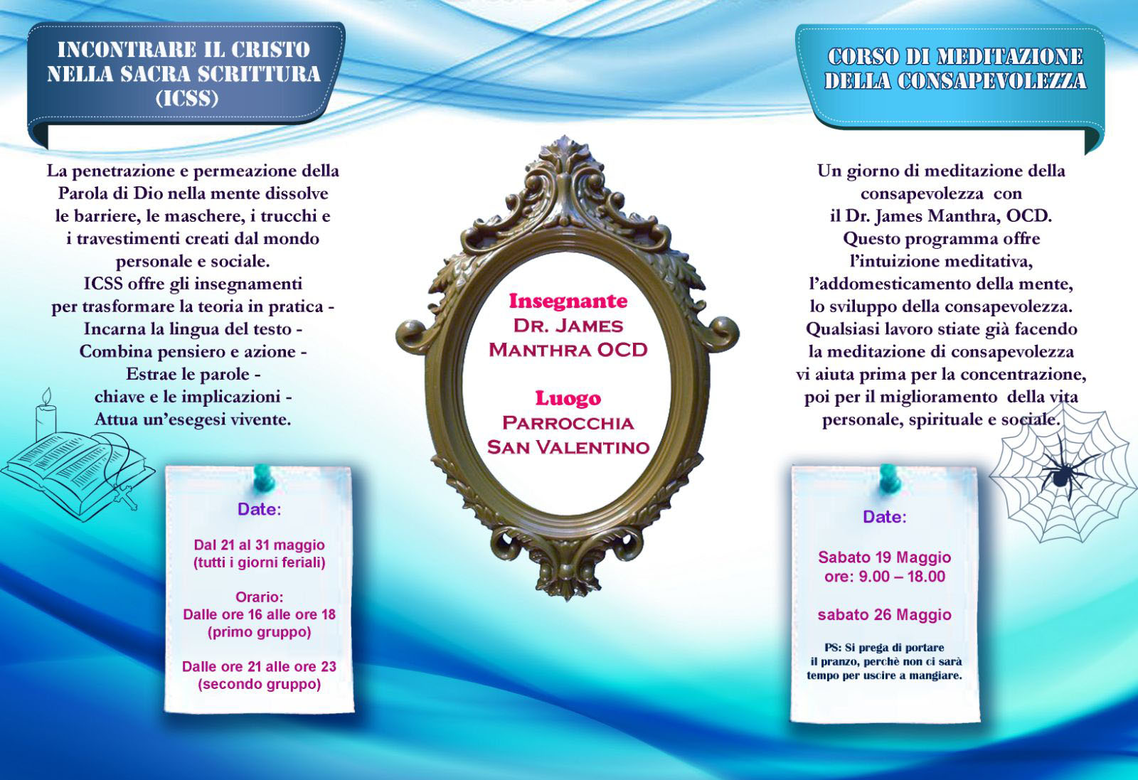Un giorno di meditazione della consapevolezza con il Dr. James Manthra, OCD. Questo programma offre l’intuizione meditativa, l’addomesticamento della mente, lo sviluppo della consapevolezza. Qualsiasi lavoro stiate già facendo la meditazione di consapevolezza vi aiuta prima per la concentrazione, poi per il miglioramento della a personale, spirituale e so •