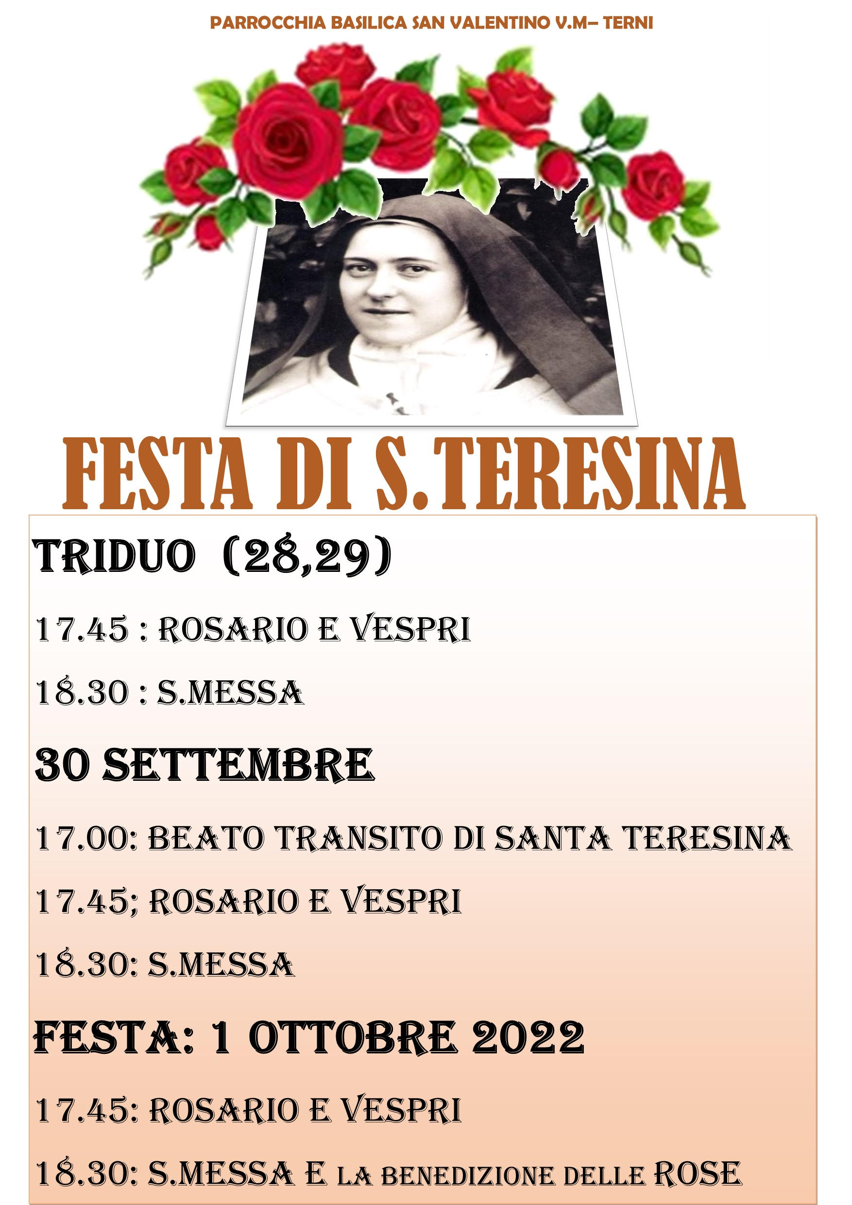 Parrocchia San Valentino – festa di Santa Teresa di Lisieux