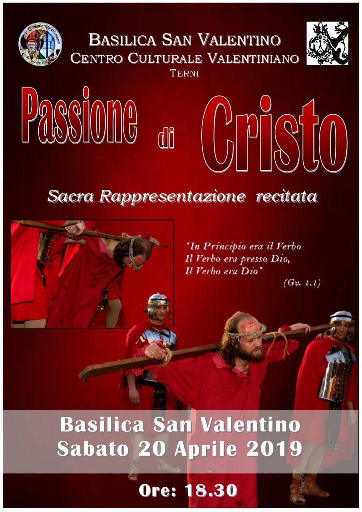 Sabato 20 aprile alle ore 18,30 sul sagrato della Basilica di San Valentino, Il centro culturale Valentiniano rappresenterà la “Passione di Cristo” con più di 40 figuranti.