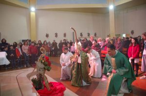“Vorrei ringraziare il Signore per i frutti buoni di vita che sono presenti in questa comunità – ha detto il vescovo – per la comunità religiosa della Provvidenza Santissima i Missionari e missionarie che sono impegnati nella preghiera e nell’azione pastorale e missionaria. La presenza ulteriore giovane sacerdote è una grazia che deve essere valorizzata soprattutto per la pastorale giovanile, perché sappiamo che i giovani si evangelizzano con i giovani. In questa zona è ancora presente la capacità di relazionarsi tra vicini, un aspetto che va curato non va lasciato a sé stesso. C’è la positiva esperienza di catechesi degli adulti nello stile dei dieci comandamenti così pure i gruppi e le associazioni ministri vari sono un dono del Signore mi ha colpito in modo particolare l’esperienza di fede e luce; l’impegno generoso della pastorale giovanile con un gruppo di giovani animatori motivati”.