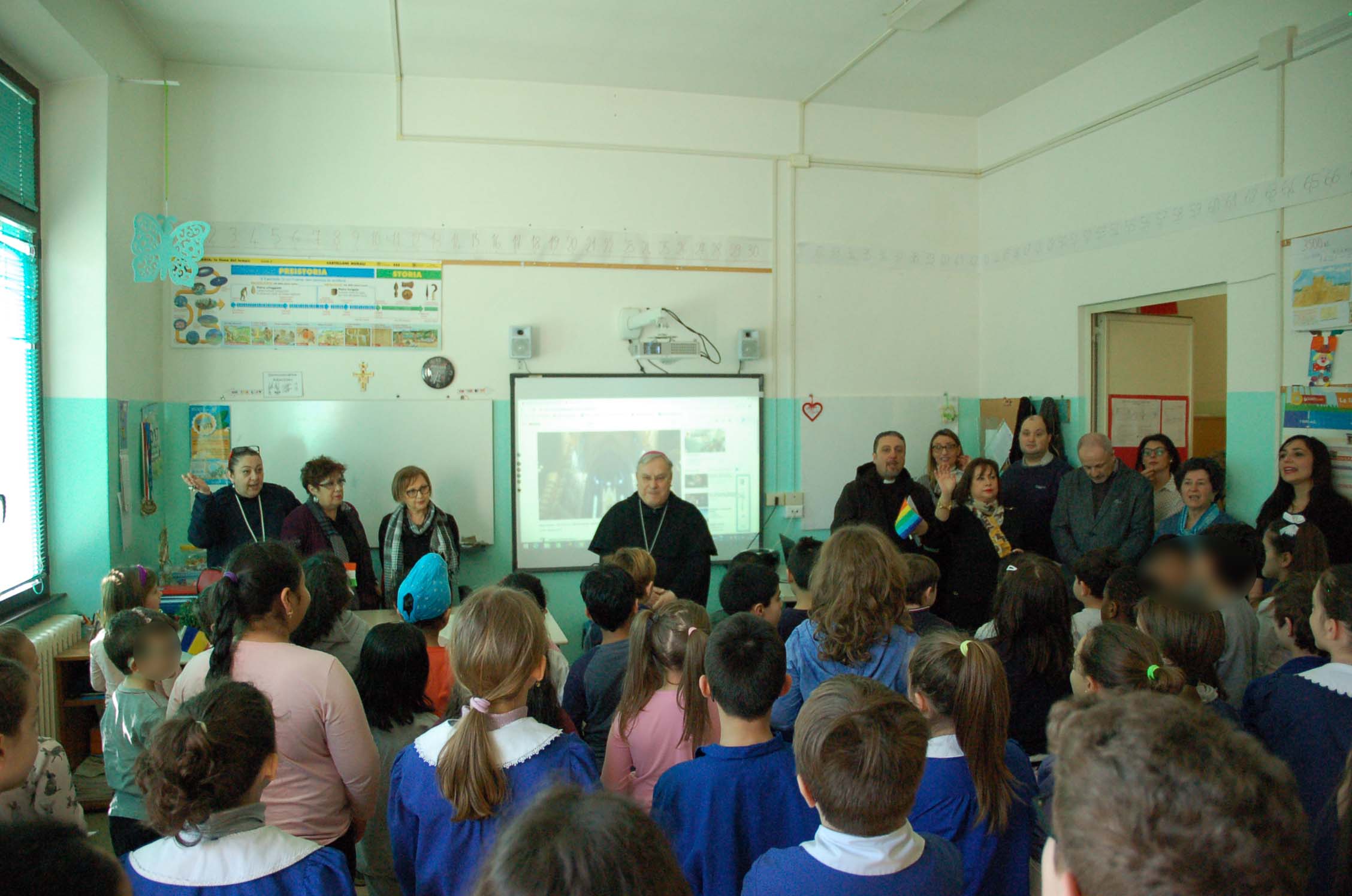 In occasione della visita pastorale alla parrocchia di Santa Maria del Carmelo al quartiere Italia di Terni, il vescovo ha incontrato gli alunni e docenti della scuola per l’infanzia e primaria “Falcone- Borsellino” accolto dalla dirigente scolastica Teresa Assunta Fiorillo, dalle coordinatrici del plesso Tiziana Peracchini e Antonella Alunni Pistoli.