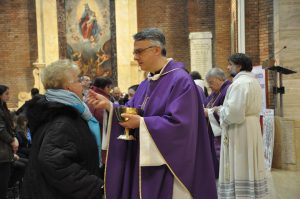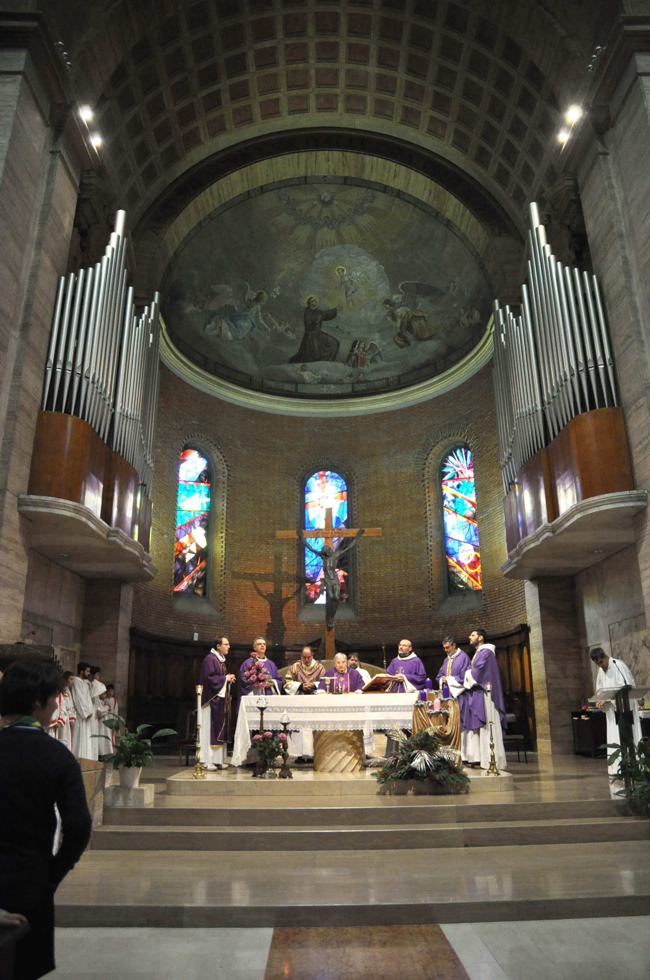 “La ricchezza di gruppi associazioni e comunità, che pure mi sembrano vivere in armonia, dovrebbero concorrere in una comunione ecclesiale più stretta alla elaborazione e esecuzione dell’unico un programma pastorale parrocchiale. Il rischio è che vi siano tante piccole monadi che vanno per la propria strada, una strada bellissima luminosa, ma che non si incontrano nella comunità. L’incontro è l’Eucaristia domenicale, è nel discernimento comune per individuare quali sono i progetti di annuncio del Vangelo che il Signore ci propone oggi in questo territorio. L’evangelizzazione di questo territorio è affidata a questa comunità. Dovrebbe crescere anche la comunione all’interno della diocesi, ogni parrocchia deve sentirsi parte di una chiesa, seguendo le indicazioni che dà il vescovo o l’impegno a cooperare col vescovo nell’azione pastorale in questa diocesi. Vorrei poi incoraggiare ad un’apertura della comunità alla dimensione missionaria ad gentes: tanta ricchezza di persone nei gruppi, cerchiamo di aprirla alle missioni francescane”.