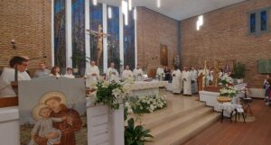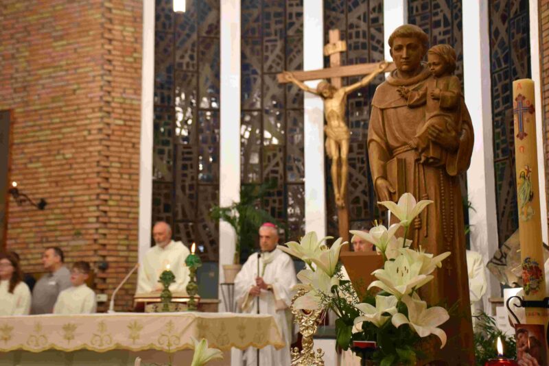 “Giugno è per la nostra Comunità un tempo di grazia, di invocazione, di gioia. Di grazia, perché possiamo vivere alcuni appuntamenti utili al nostro cammino di fede – scrive il parroco don Angelo D’Andrea -. Di invocazione, perchè chiediamo l’intercessione del nostro Santo Patrono, Antonio di Padova; a lui, che da oltre cinquant’anni veglia su di noi affidiamo quanto portiamo nel cuore. Di gioia, perché ci ritroviamo insieme per condividere momenti (liturgie, catechesi, testimonianze e attimi ricreativi) che, ne sono certo, possono rafforzare i nostri rapporti, con Dio e tra di noi. Carissimi, non smettiamo di stare insieme; lasciamo che il Signore e il suo Vangelo siano la bussola che orienta la nostra vita! Allora non vivremo più nell’affanno, nella paura, ma saremo capaci di compiere scelte importanti, divenendo sempre meglio, in questo tempo e in questo mondo, ‘sale e luce’ per tanti”.