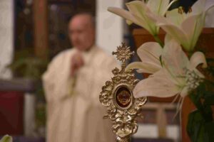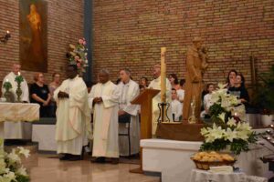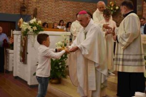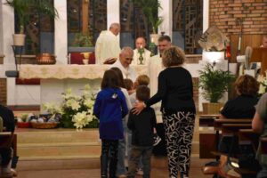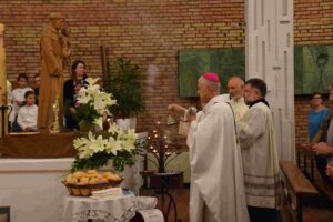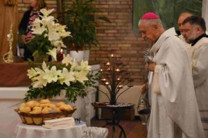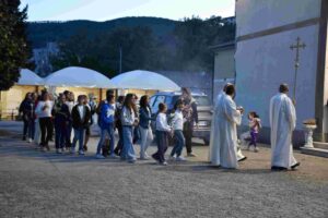 I ragazzi dei gruppi di catechismo hanno donano un fiore bianco al Patrono e un ‘pane’ per i poveri.