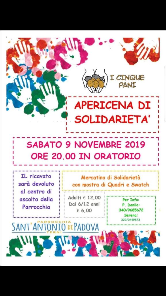 Sabato 9 novembre ore 20 oratorio della parrocchia di Sant’Antonio
