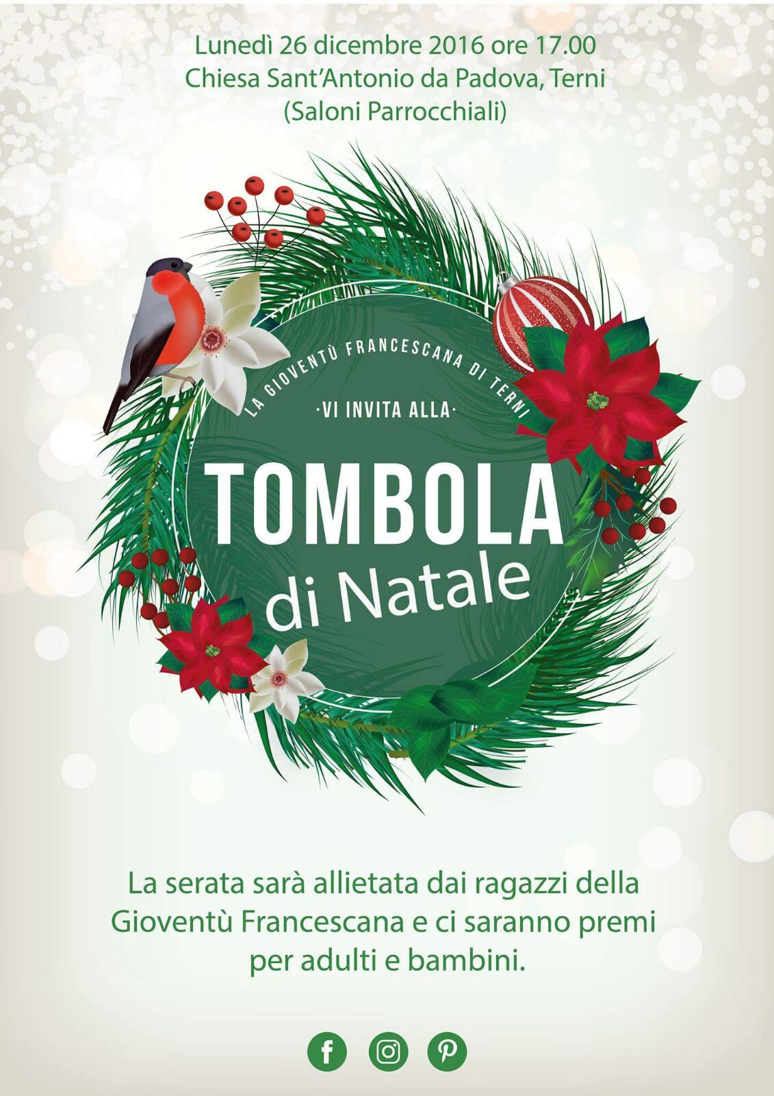 La parrocchia di Sant’Antonio di Terni organizza il 26 dicembre alle 17 organizza una tombola di Natale animata dai ragazzi della Gioventù Francescana con premi per adulti e bambini.
