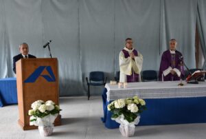«È significativo celebrare la messa in prossimità della Pasqua in questa azienda per il mondo del lavoro – ha detto il vescovo Soddu -. Il rinnovarsi di una memoria che è il centro della storia dell’umanità, ma anche della nostra vita. Tutto ciò ha un senso solo se, ognuno di noi, risponde al dono che il Signore ci ha fatto attraverso la fede, nell’affidarsi a Lui, ponendo la vita nelle mani di Dio. Tutto deve essere orientato alla Pasqua come comprensione e affidamento a Dio, come ha fatto Gesù sulla croce, un estremo atto di affidamento. Nella morte e resurrezione di Gesù Cristo ci rendiamo conto che la vittoria sul male deve essere fatta con il bene assoluto. Pasqua significa nuova vita, operare nel bene. Tutti dobbiamo adoperarci per fare opere buone ed essere capaci di rendere lode a Dio. Apriamo lo sguardo e il cuore ad una speranza nuova, così deve essere anche all’interno della fabbrica, all’interno della famiglia, all’interno della società».