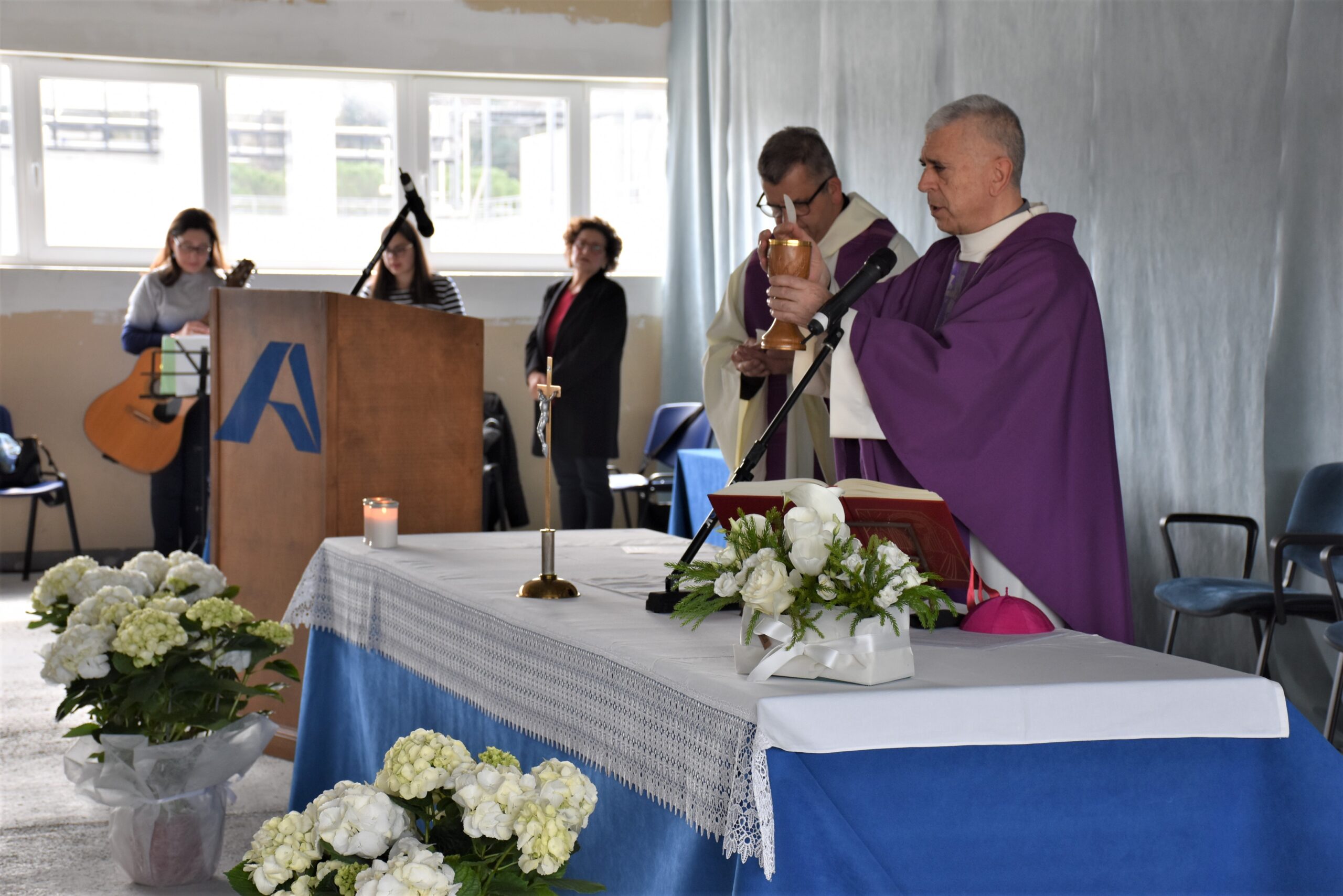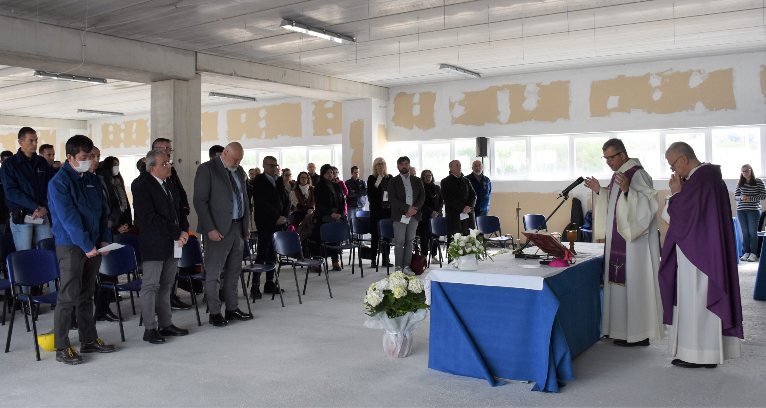 La celebrazione in preparazione alla Pasqua presso lo stabilimento Alcantara di Nera Montoro, presieduta dal vescovo Francesco Antonio Soddu, giovedì 30 marzo, e concelebrata da don Fabrizio Bagnara parroco di Taizzano, rinnova la tradizione pasquale della messa in fabbrica al polo industriale di Nera Montoro, che riunisce e unisce direzione, maestranze, operatori delle varie realtà imprenditoriali. È stata la prima celebrazione in questa azienda presieduta dal vescovo Soddu, accolto dal direttore Giovanni Addino che lo ha ringraziato a nome di tutta l’azienda ed ha brevemente illustrato la storia e l’attività dell’azienda in continua espansione ed evoluzione.