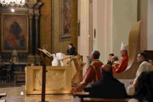 Al centro della riflessione del vescovo, rifacendosi alla lettura del profeta Isaia e della lettera agli Ebrei, il dono di Gesù all’umanità: “in questo si esplica il senso del dono grande di Gesù che ha dato la vita per noi, per la nostra salvezza. Noi oggi non celebriamo un morto ma ricordiamo quell’evento che è il fondamento della nostra salvezza e che apre al mistero della redenzione e della resurrezione. La domanda della ricerca di Gesù deve pervadere ogni istante della nostra vita. Noi siamo i cercatori di Dio e come ogni cosa prezioso e necessità che abbiamo chiaro chi e che cosa stiamo cercando. Chi cerca Gesù cerca la verità che è una persona: Gesù. Dobbiamo porre la nostra umanità che cerca Gesù che possiamo ricevere la regalità che ci è stata data con il Battesimo. Da questo deve nascere il senso di gratituidine perchè Gesù ci ha indicato la via, e tutte le volte che smarrisco la via che conduce a Gesù sono Giuda o Pietro a seconda delle situazioni, nel non impegnarmi e sporcarmi le mani”.