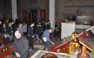 Venerdì 10 marzo alle ore 21 nella parrocchia di Sant’Antonio di Padova a Narni scalo, si è tenuto l’incontro di preghiera quaresimale dei giovani con il vescovo Giuseppe Piemontese, organizzato dal servizio di pastorale giovanile e dal centro diocesano vocazioni. Un momento di preghiera in occasione della Quaresima, tempo di riflessione in preparazione alla Pasqua incentrato sul brano evangelico delle tentazioni di Gesù. Durante la lettura del brano, dopo la parte riferita ad ogni tentazione, è stata accesa una luce ad illuminare un’oggetto, rappresentante la tentazione appena ascoltata, posto intorno all’altare. Sulle tentazioni della fame del piacere, potere, possesso vissute da Gesù nel deserto, è stata la riflessione proposta dal vescovo, tentazioni che sono oggi quelle che vivono ragazzi e ragazze nella loro vita, accecati da tante tentazioni che coprono gli occhi alla luce di Dio, la quale inevitabilmente si palesa al crollare di questi fuochi fatui.