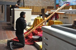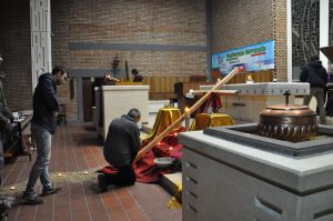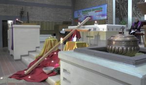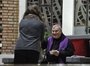Il gesto conclusivo è stato quello di attingere dal fonte battesimale per fare un segno della croce di fronte alla croce posta al centro della scena, a richiamare i segni del battesimo sul quale si centra la riflessione della Quaresima. Ad ogni ragazzo è stato consegnato dal vescovo un piccolo cartoncino con su scritti il riferimento del Vangelo di ogni domenica di Quaresima e l’invito a partecipare alla veglia del Sabato Santo nella propria parrocchia di appartenenza.