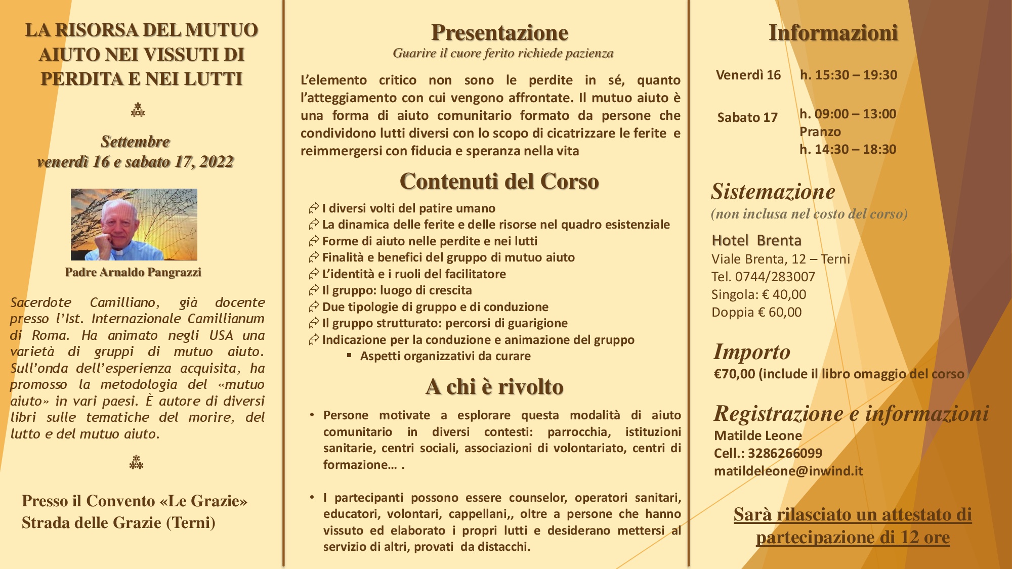 Venerdì 16 e sabato 17 settembre presso il convento Le Grazie a Terni, curato da padre Arnaldo Pangrazzi sacerdote camilliano