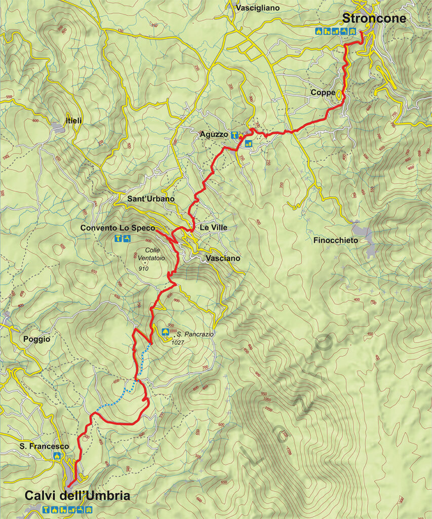 In questa tappa non sono previsti luoghi attrezzati per il pranzo, pertanto è necessario provvedere il pranzo al sacco che può essere consumato allo Speco di Narni.