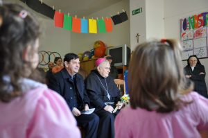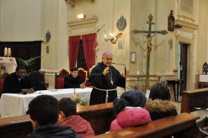 Hanno eseguito dei canti, ballato, dialogato con il vescovo al quale hanno donato un album di disegni da loro realizzati per questa occasione della visita pastorale, accompagnato da un grande striscione di benvenuto con su scritto: “Ti vogliamo bene”.