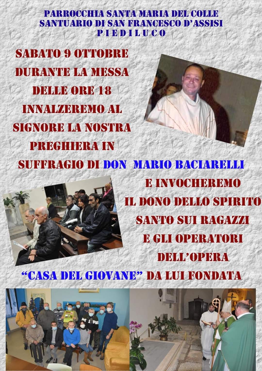 Sabato 9 ottobre sarà ricordato don Mario Baciarelli, nella messa alle ore 18 nel santuario di san Francesco a Piediluco presieduta dal vescovo Giuseppe Piemontese.