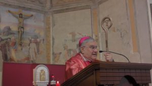 “Oggi quel Gesù, che ieri abbiamo contemplato nel battesimo, lo contempliamo glorioso sulla croce come il buon Gesù e non c’è espressione più bella che si possa dire di Gesù – ha detto il vescovo -. Il buon Gesù dall’alto della croce ci guarda, ci ama, ci incoraggia e ci guida. Noi volgiamo gli occhi della mente e del cuore a Gesù per sentirci in sintonia con lui, per dirgli grazie per quanto ci ha amato, per invocare da lui l’aiuto e la grazia, la guida perché possiamo portare a compimento la nostra vocazione e la nostra missione di uomini e di donne, di cristiani su questa terra”.