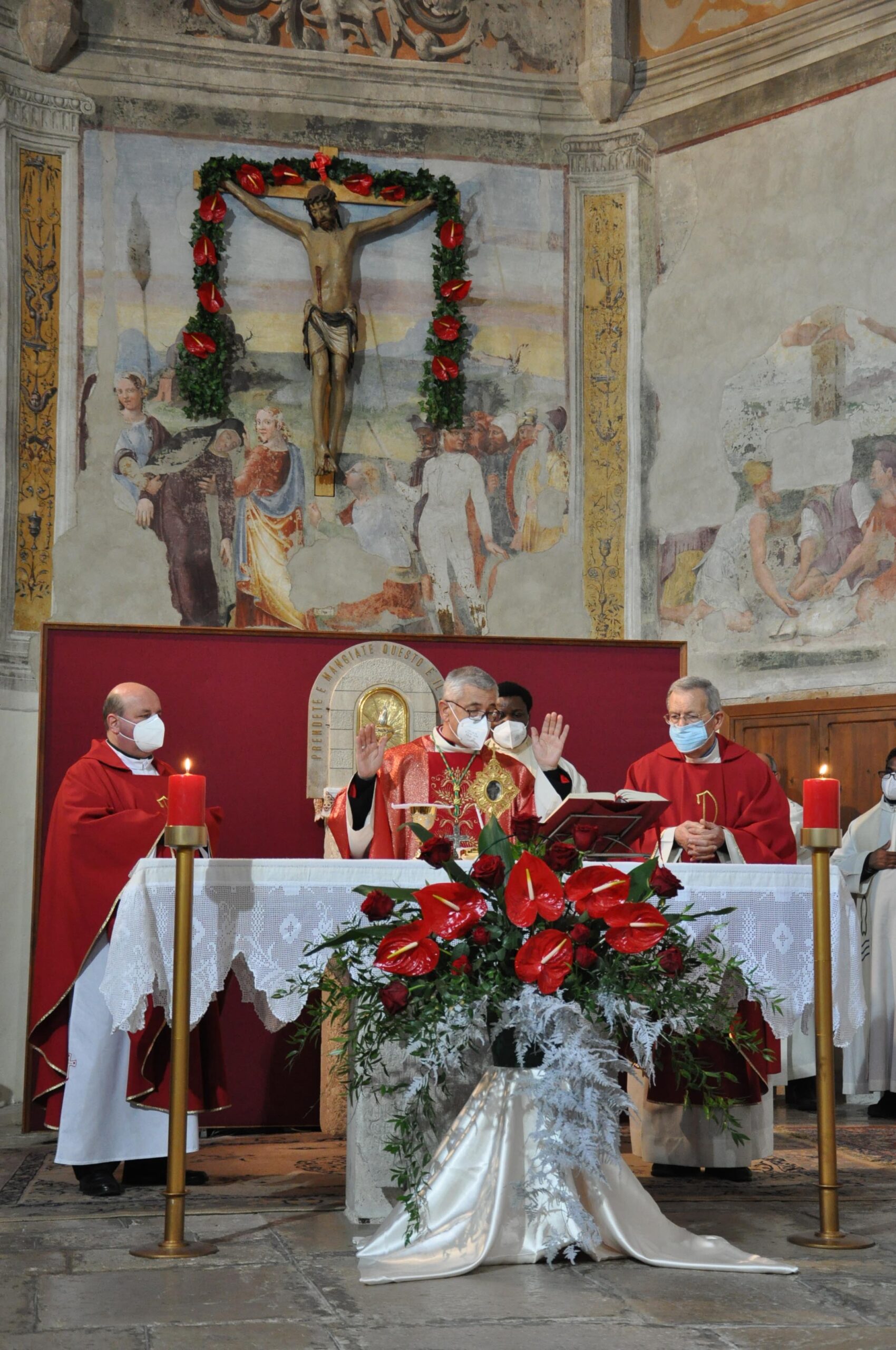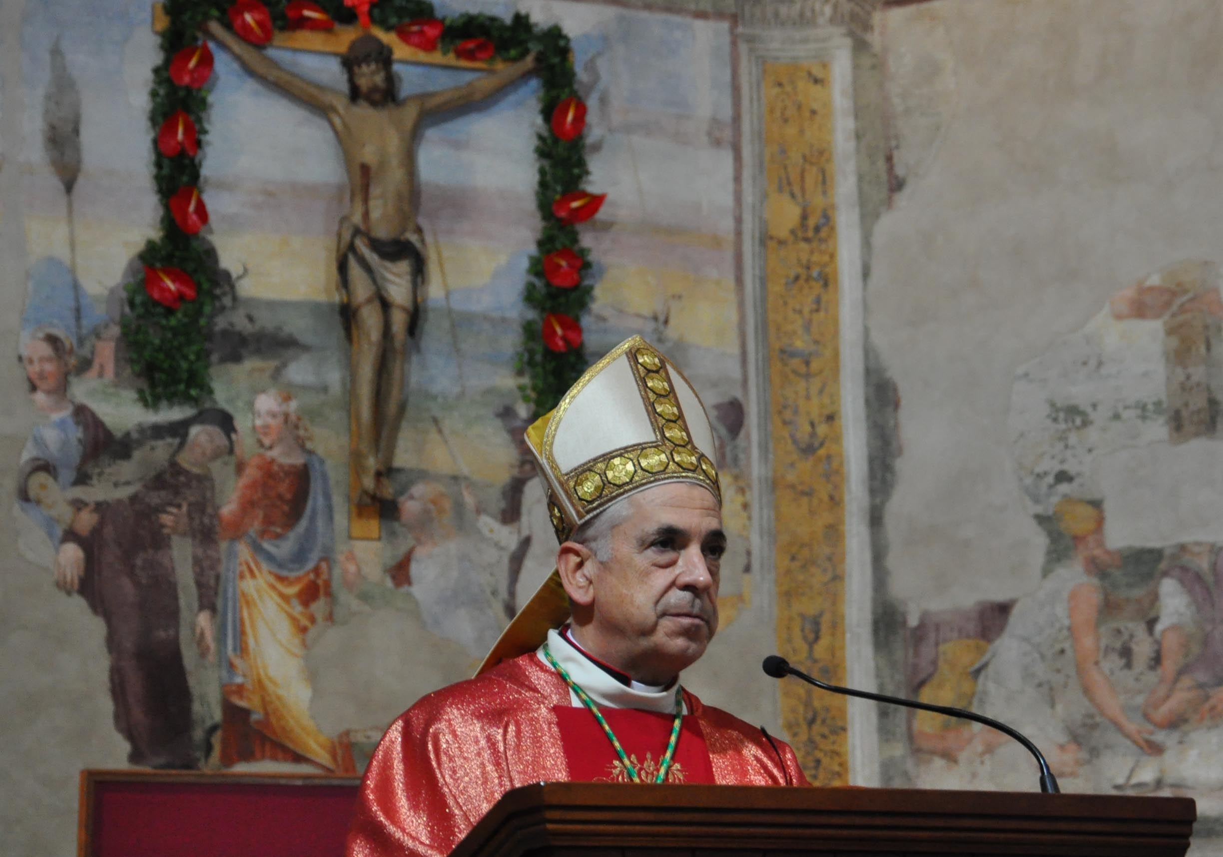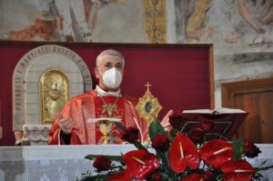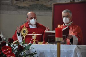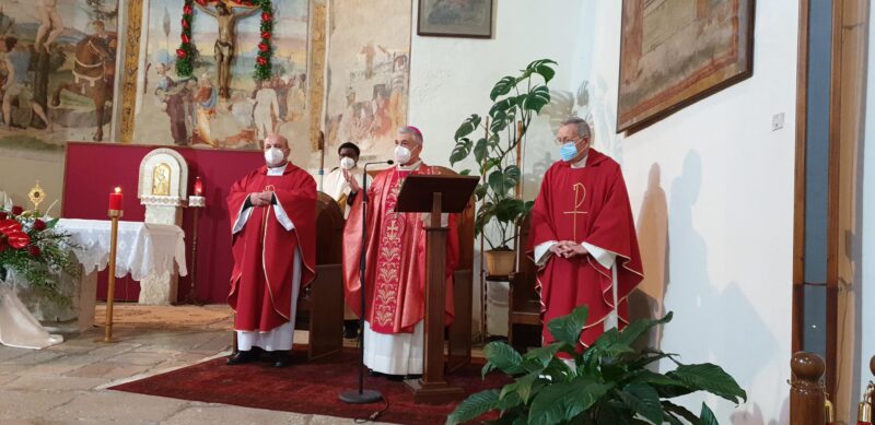 Nell’omelia il vescovo ha ricordato il difficile momento della pandemia e intrepretare alla luce del tempo che viviamo il pensiero di Dio, cioè richiamare il nostro impegno: “Gesù è buono perché ha dato se stesso per noi; ed è buono perché vuole il nostro bene, il bene di ciascuno di noi. Dal mistero della sua donazione in croce abbiamo la splendida opportunità di accedere all’insegnamento grande datoci da lui il quale ci indica quale sia veramente il nostro vero bene. Consideriamo quanto nei progetti internazionali, nazionali, regionali, familiari e personali, ossia in tutto ciò che si desidera possa essere utile per la vita, questa verità, cioè la salvezza del mondo attraverso la donazione del Figlio in croce, sia tenuta in considerazione. In altre parole consideriamo quanto, a partire da noi stessi, quanto la salvezza operata da Cristo sulla croce sia tenuta in considerazione nei nostri progetti e programmi di vita. Guardando il Signore crocifisso, noi oggi consideriamo la sua bontà e con san Paolo esclamiamo: Mi ha amato e ha dato se stesso per me!. Questa bontà diventa dunque il metro di misura per ogni nostro rapporto interpersonale, vale a dire come Lui mi ha amato e ha dato se stesso per me, così anche io se, voglio manifestare amore autentico nei confronti di chiunque, devo necessariamente mettere in atto la stessa dinamica, ossia dare me stesso, tutto me stesso… e non soltanto intenzioni, bei pensieri, buoni propositi circostanziati. La bontà dell’amore si misura con l’amore infinito di Dio, che in Gesù suo Figlio si è donato completamente a noi”.