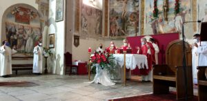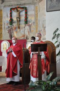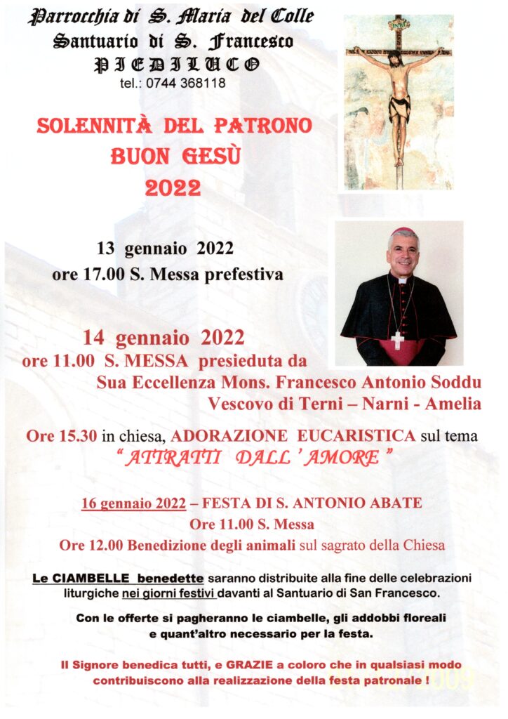 Celebrata la festa del Buon Gesù a Piediluco con la messa solenne presieduta dal vescovo di Terni-Narni-Amelia Francesco Antonio Soddu e concelebrata dal parroco don Ioan Ghergut, dal vicario generale mons. Salvatore Ferdinandi e alla presenza dei sacerdoti della vicaria Terni 3. Entrando in chiesa il vescovo si è soffermato per una breve preghiera davanti alla tomba di don Mario Baciarelli a lungo parroco nel borgo lacustre e fondatore della “Casa del Giovane” opera di accoglienza per i ragazzi più svantaggiati.