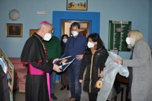 Al termine della celebrazione il vescovo ha salutato i fedeli presenti e ha fatto visita agli ospiti della Casa del Giovane che hanno donato al vescovo Soddu un albun per foto relaizzato da loro nei laboratori di carta riciclata e rilegatoria.