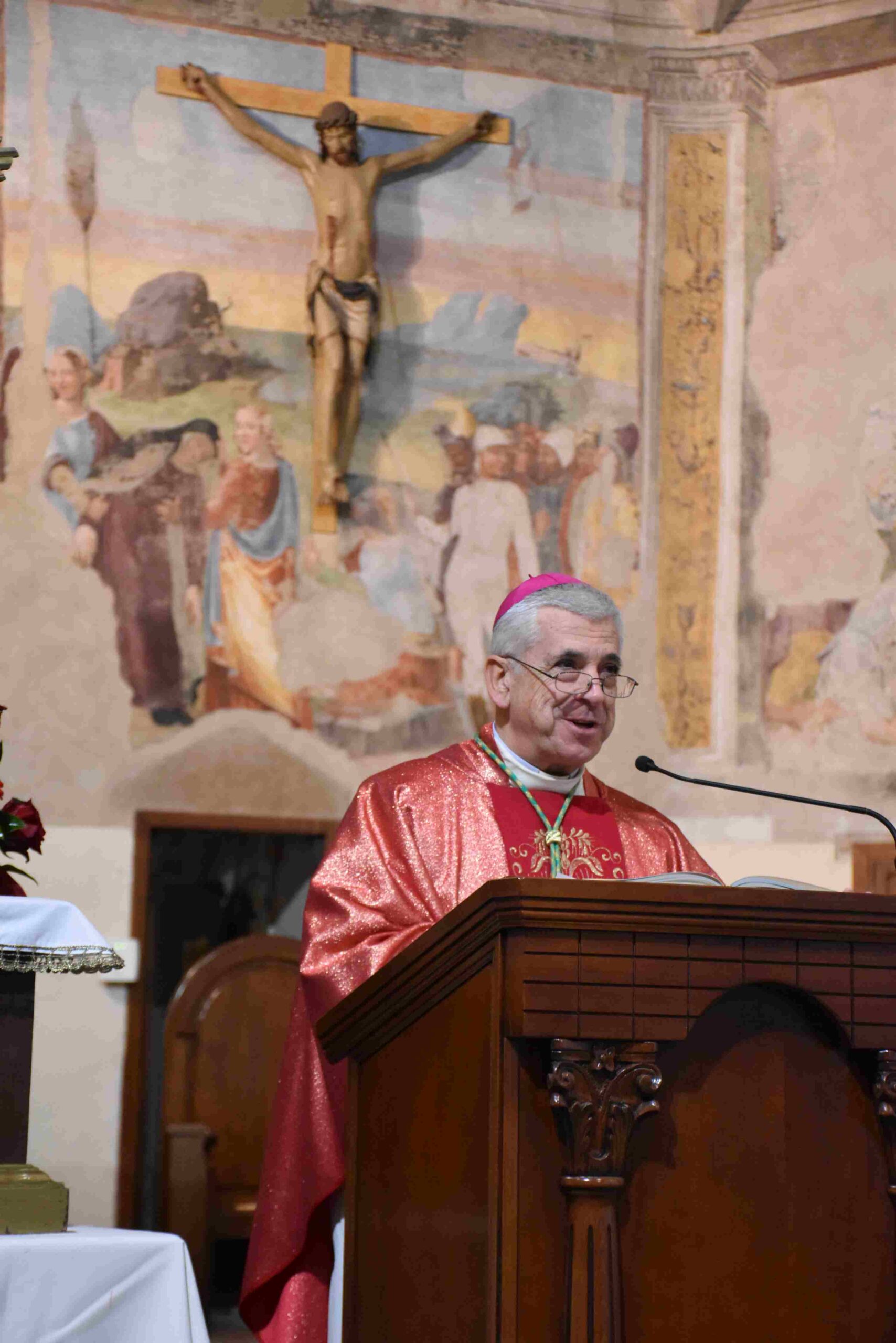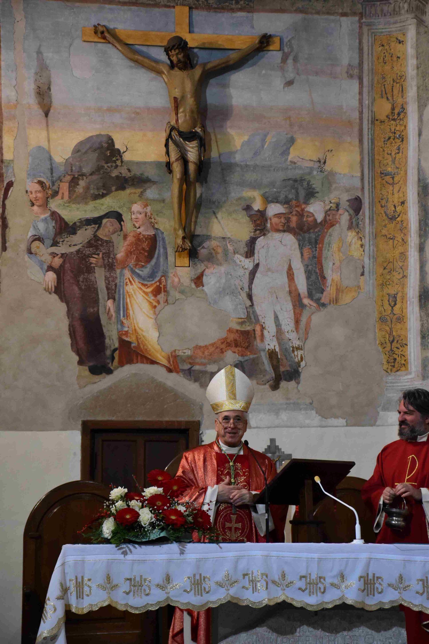 Gesù è buono perché ha dato sé stesso per noi; dal mistero della sua donazione in croce abbiamo la splendida opportunità di accedere all’insegnamento grande datoci da lui, il quale ci indica quale sia veramente il nostro vero bene. Per noi nasce e si alimenta la speranza, la speranza certa che nel mistero pasquale di Gesù e solo in lui noi abbiamo la salvezza. Questa verità necessita oggi più che mai d’essere riconosciuta ed accolta nei progetti internazionali, nazionali, regionali, familiari e personali, ossia la salvezza del mondo attraverso la donazione del Figlio di Dio sulla croce. Tutto questo dev’essere attuato a partire da noi stessi: dai nostri progetti e programmi di vita”. Al termine il vescovo ha benedetto il nuovo coro ligneo realizzato dall’artista Alban Guillon.