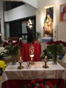 In tanti hanno voluto venerare e sostare in preghiera davanti alla Reliquia pellegrina di santa Rita proveniente dalla Basilica di Cascia.