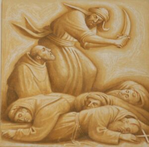 Il martirio dei cinque frati francescani Berardo da Calvi, Pietro da San Gemini, Ottone da Stroncone, Accursio e Adiuto da Narni, inviati come missionari in Marocco il 16 gennaio 1220, nella terra degli infedeli saraceni, è una delle pagine poco note ma esemplari nella storia del francescanesimo. Alla loro vicenda è legata la conversione del canonico agostiniano Fernando Martinez da Lisbona, ossia sant’Antonio da Padova, che alla vista delle spoglie martoriate dei cinque frati, desideroso del martirio per Cristo e abbandonato l’abito agostiniano, indossò il saio francescano.