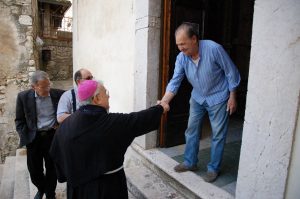 Con l’accoglienza e la liturgia di apertura è iniziata la visita pastorale del vescovo alla parrocchia del SS. Salvatore a Rocchette, piccolo borgo del Comune di Torri in Sabina. Ad accoglierlo alla porta antica del paese il sindaco di Torri in Sabina Michele Concezzi, l’assessore di Rocchette Fabio Troiani, il maresciallo dei Carabinieri di Torri in Sabina, il parroco don Pino Creanza e la comunità parrocchiale di Rocchette che ha dato il benvenuto al vescovo, accompagnandolo, tra i caratteristici vicoli, fino alla chiesa parrocchiale.