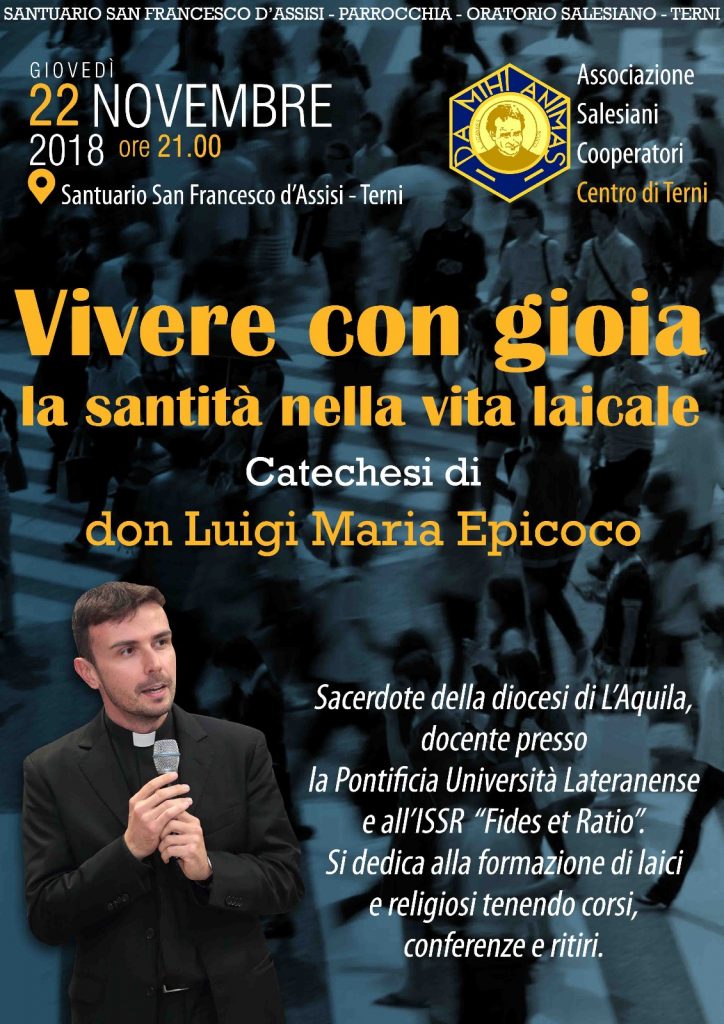 Giovedì 22 novembre ore 21 santuario di san Francesco a Terni, catechesi sul tema: “Vivere con gioia la santità nella vita laicale”.