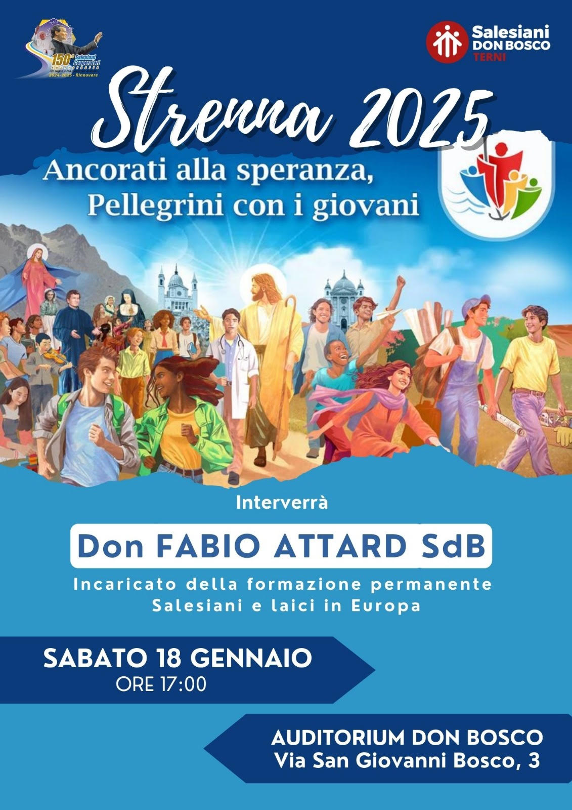 Sabato 18 gennaio alle ore 17:00 nel cine-teatro-auditorium Don Bosco a Terni verrà presentata la strenna salesiana per il 2025 “Ancorati alla speranza, pellegrini con i giovani”. Interverrà don Fabio Attard incaricato della formazione permanente Salesiani e laici in Europa. La speranza non è solo una parola: è un viaggio. Uscire dalla tua zona di comfort, affrontare sfide, e, soprattutto, restare aggrappato a una visione positiva del futuro. Nel 2025, come parte del Giubileo, ci sarà un invito speciale a vivere momenti di riflessione e di incontro con Dio. Questi saranno momenti per alimentare la speranza e per scoprire nuovi orizzonti. Si invitano adulti, educatori, catechisti a vivere insieme questo momento di famiglia per essere sempre di più con tutti i giovani di Terni pellegrini di speranza in questo anno giubilare.