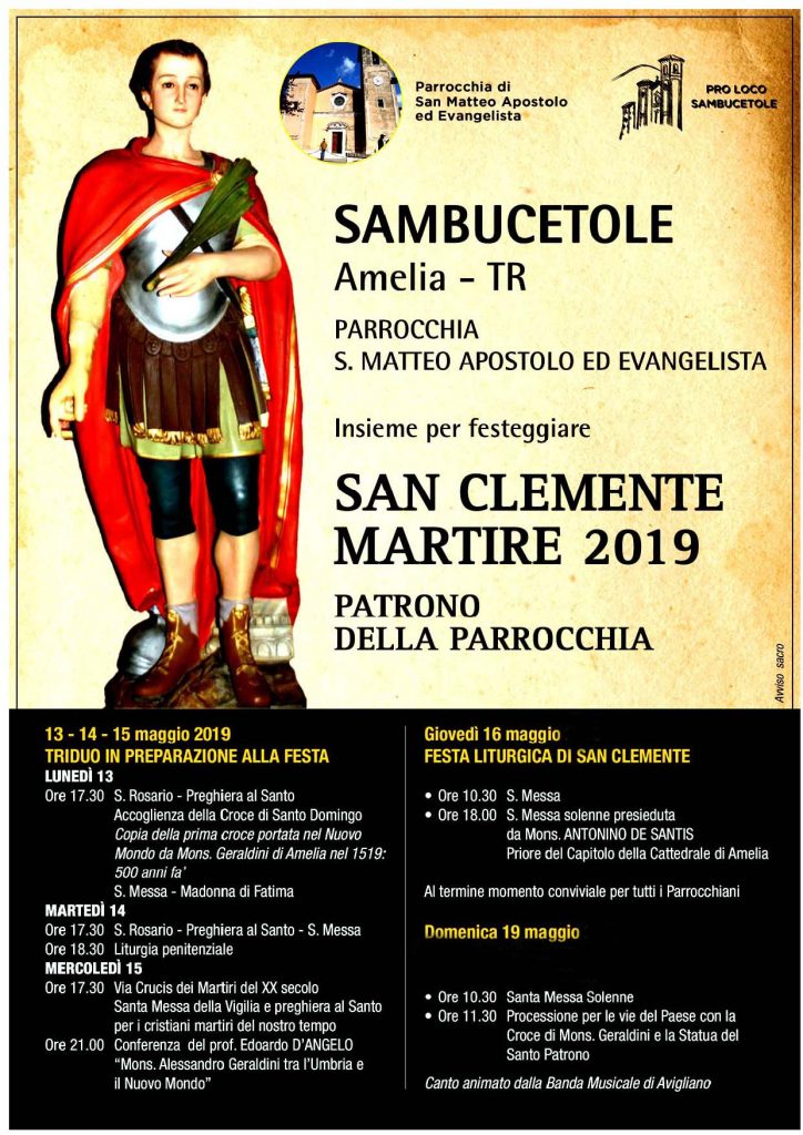 La comunità di Sambucetole festeggia dal 13 al 19 maggio la festa di San Clemente.
