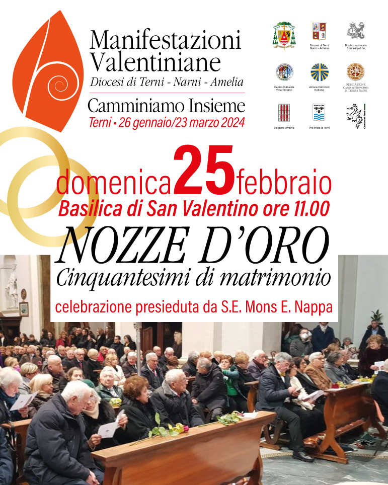 Un incontro che celebra l’amore sponsale e familiare, sottolineando il valore forte della famiglia per la crescita dei figli e nella trasmissione dei valori e della fede. La tradizione della celebrazione della ricorrenza dei 50 anni di matrimonio nella basilica di San Valentino, che si rinnova da decenni, rappresenta una grande preghiera corale per le famiglie perché s’irrobustisca l’amore reciproco, l’attenzione e la tenerezza nel prendersi cura gli uni degli altri con sincerità e rispetto.