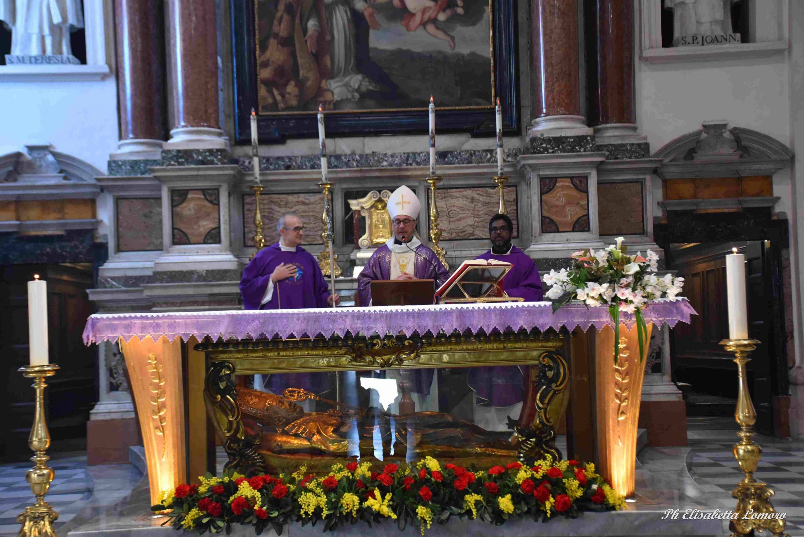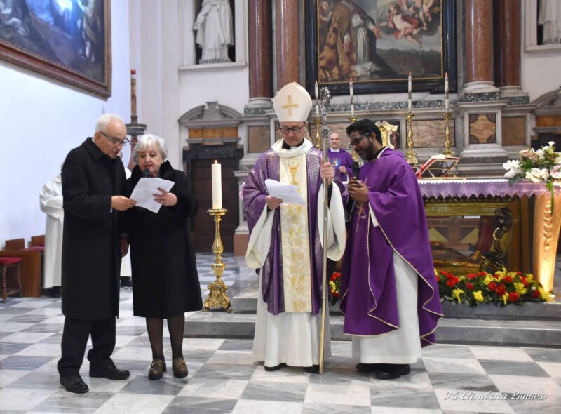 Domenica 25 febbraio, seconda domencia di Quaresima, nella basilica di San Valentino è stata celebrata la festa dei 50 anni di matrimonio presieduta dall’arcivescovo Emilio Nappa, vescovo titolare di Satriano, presidente delle Pontificie Opere Missionarie. Hanno concelebrato il parroco di San Valentino padre Johnson Perumittath e don Marco Castellani parroco di San Paolo a Terni.