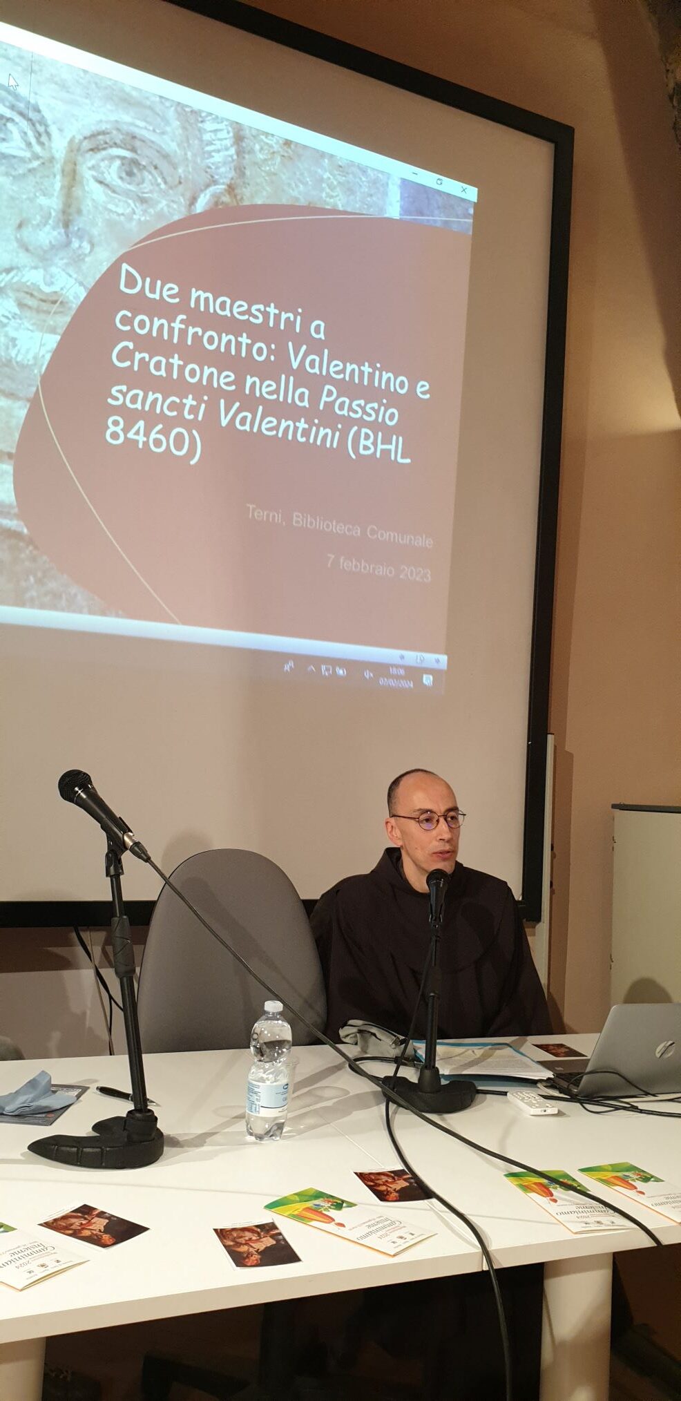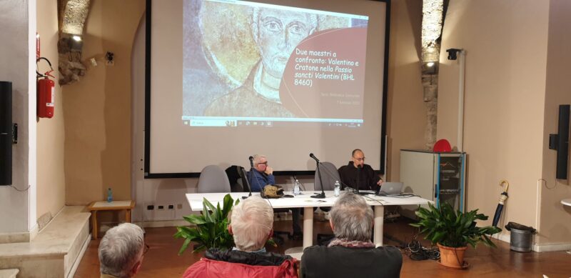 Approfondire la vicenda storica e religiosa di San Valentino alla luce delle più recenti acquisizioni scientifiche è quanto proposto nel convegno “Due maestri a confronto: Valentino e Cratone nella Passio s. Valentini” con le relazioni del prof. Edoardo D’Angelo sulla figura biografica e storica di san Valentino, e di fra Juri Leoni sugli aspetti teologici contenuti all’interno della Passione di s. Valentino di Terni. L’incontro è stato organizzato dalla diocesi di Terni-Narni-Amelia con il contributo della Fondazione Carit.