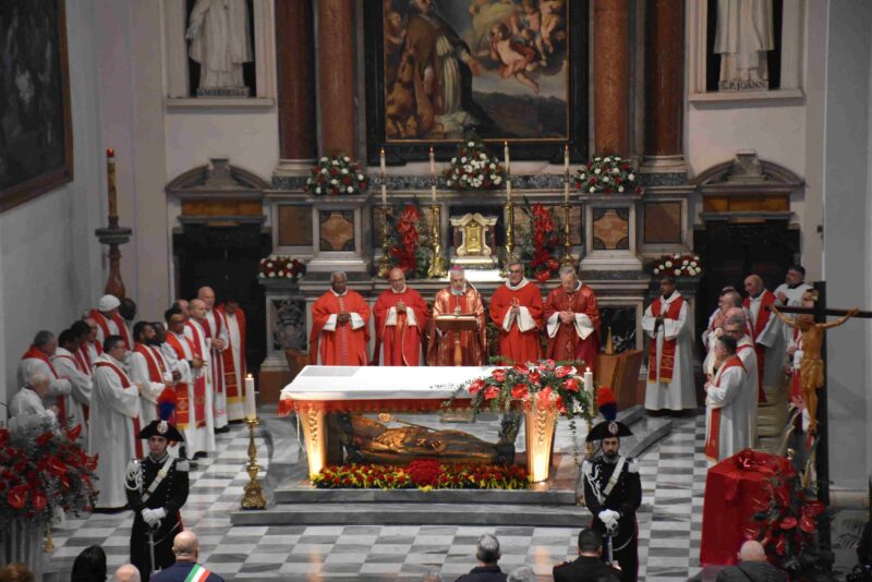 Celebrata nella basilica di San Valentino, dal vescovo Francesco Antonio Soddu la solennità del patrono di Terni e degli innamorati e copatrono della diocesi di Terni-Narni-Amelia, concelebrata dal vicario generale della diocesi mons. Salvatore Ferdinandi e dal padre Provinciale dei Carmelitani Scalzi padre Gabriele Biccai, dal parroco di San Valentino padre Josline Peediakkel, dai sacerdoti della diocesi e dai padri carmelitani, alla presenza del sindaco di Terni Stefano Bandecchi, di Francesco De Rebotti assessore allo sviluppo economico della Regione Umbria, dell’assessore alla Cultura Michela e delle autorità militari.