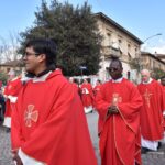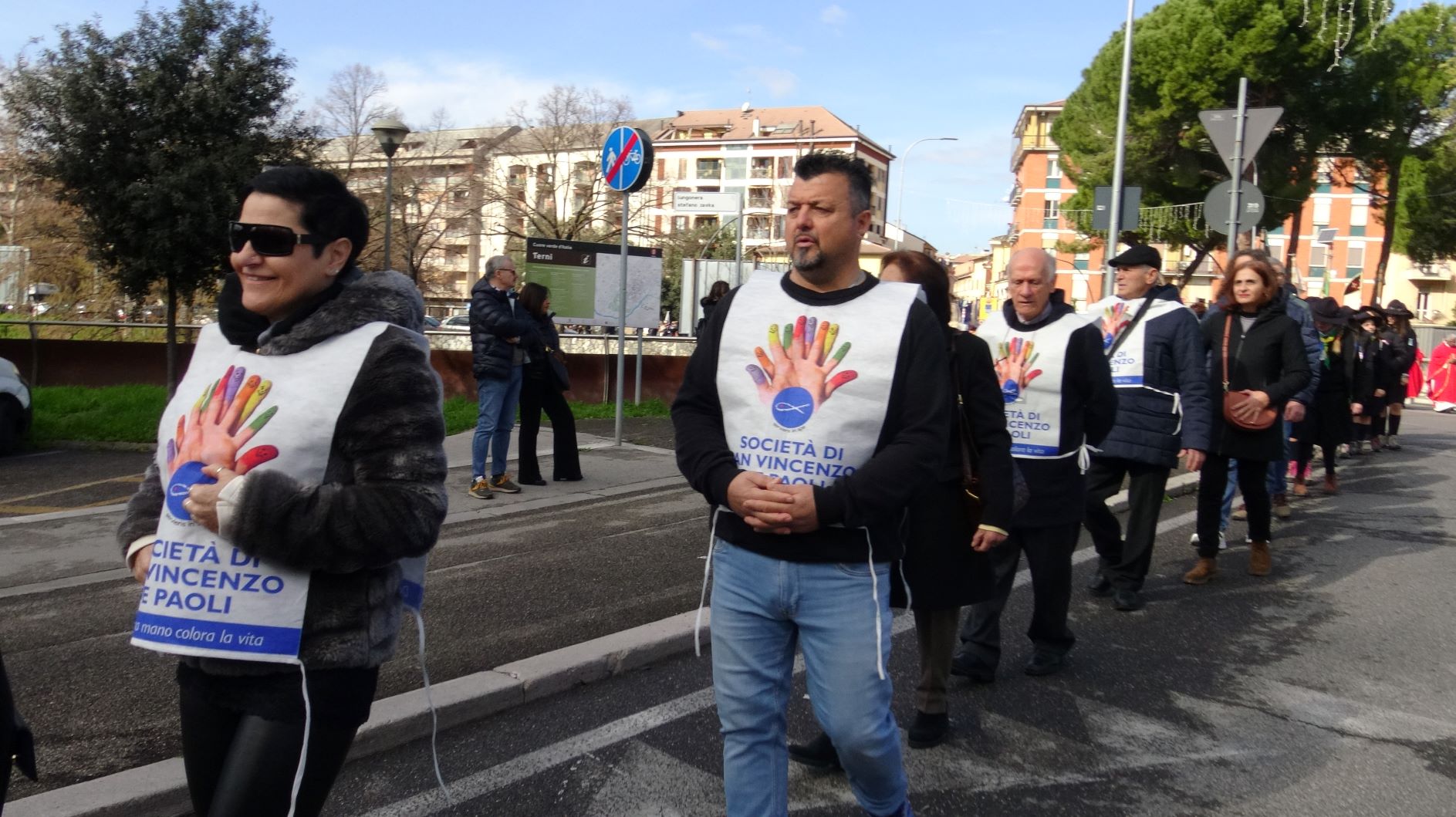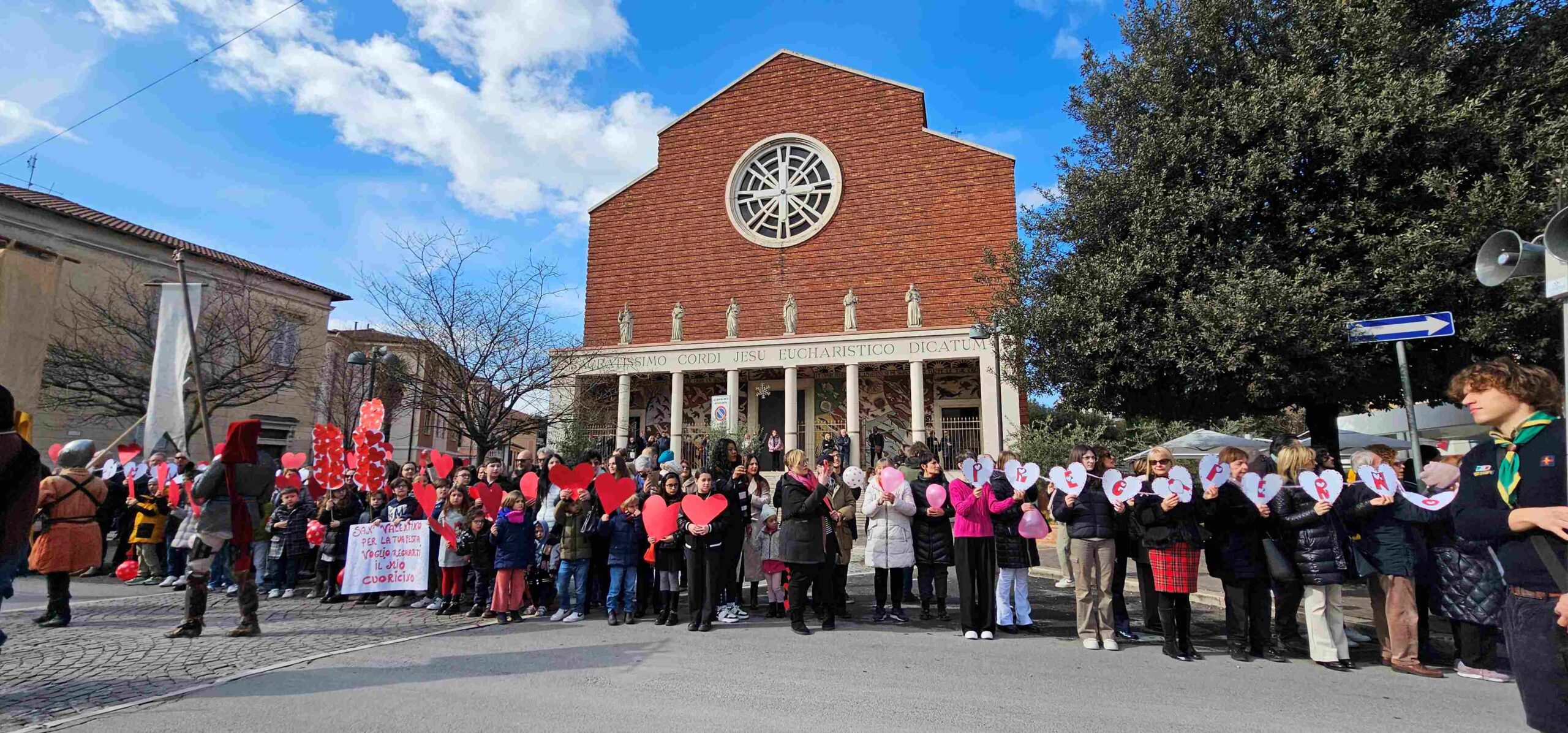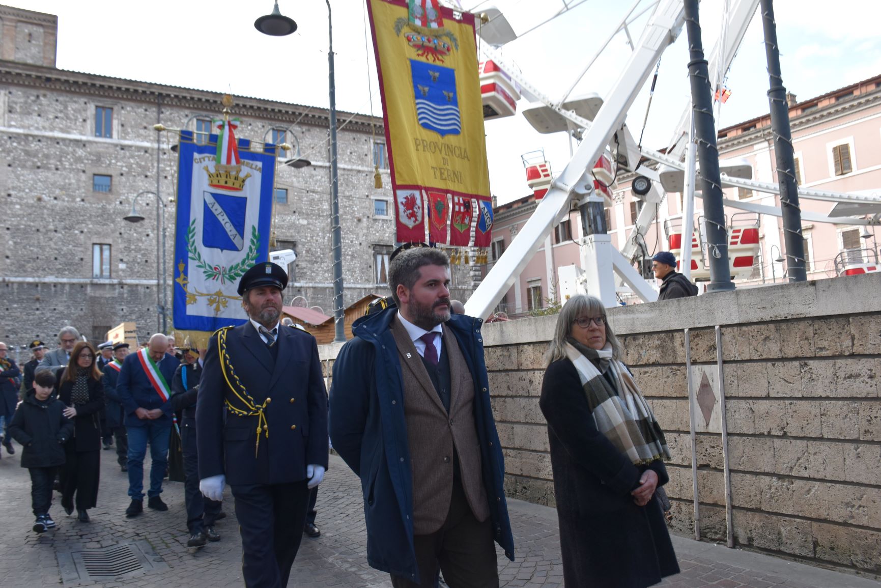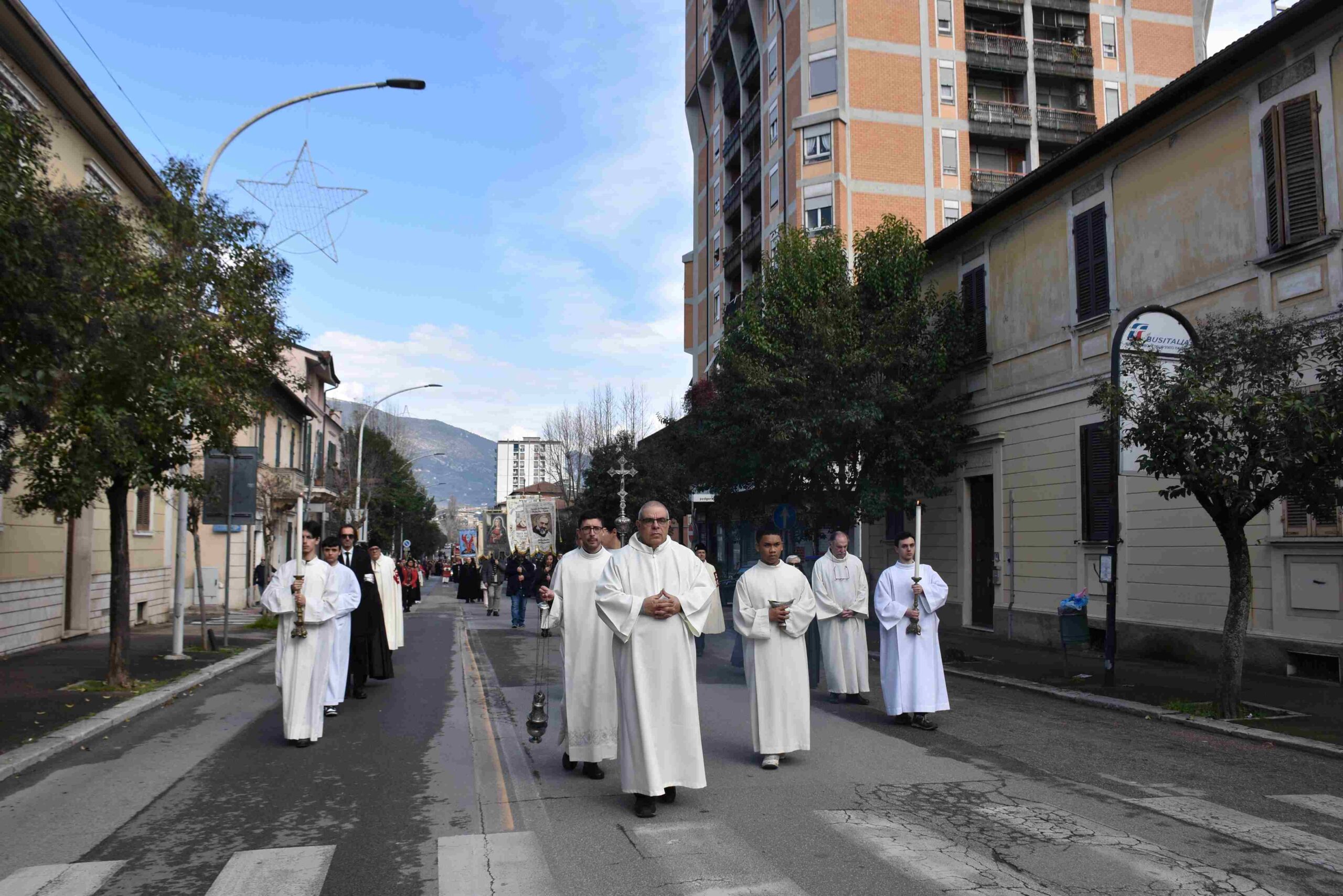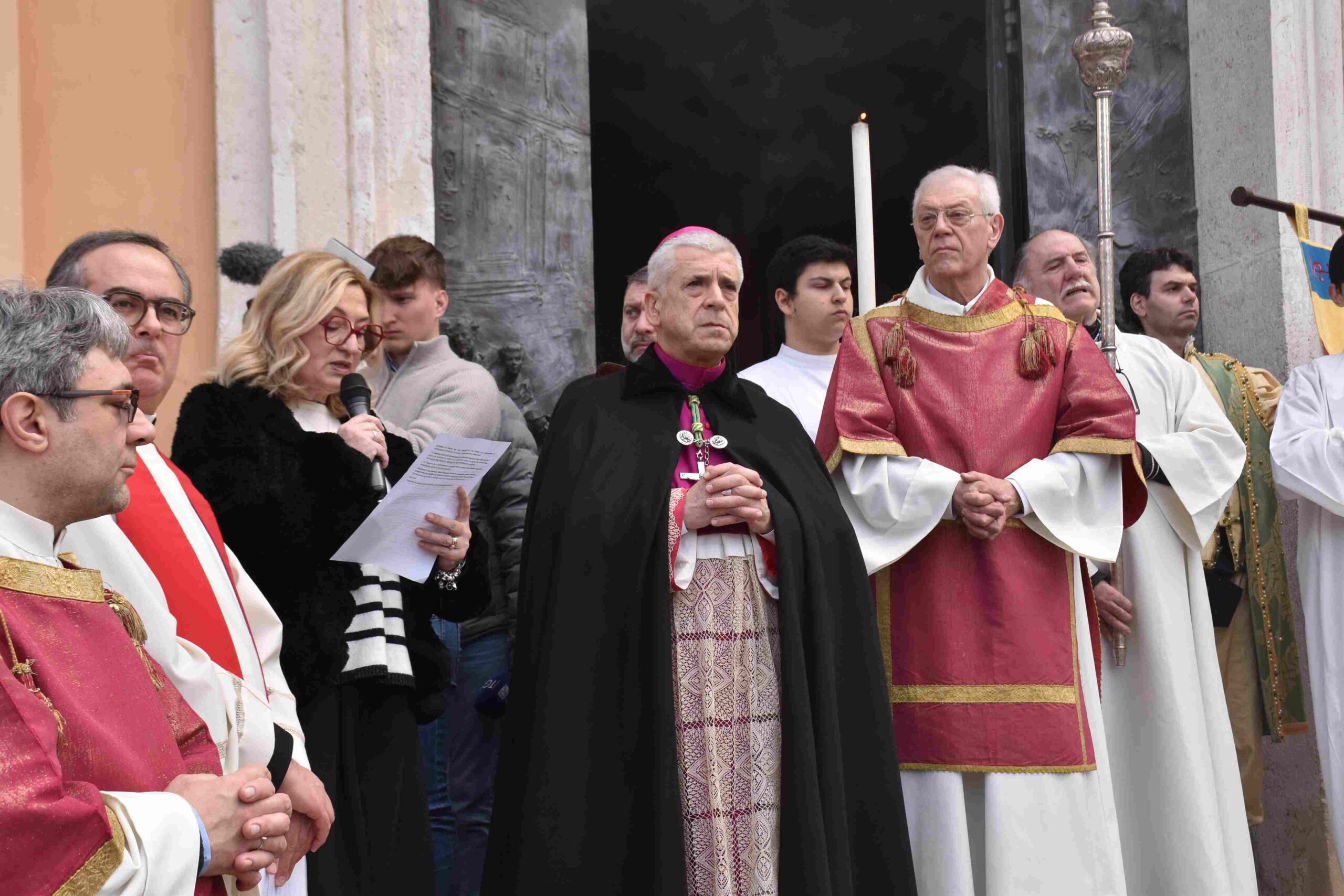 La processione è stata accompagnata dai gonfaloni del Comune, Regione e Provincia e da quelli delle confraternite, insieme ai rappresentanti di movimenti e associazioni diocesane, dalle istituzioni civili e militari presenti alla celebrazione del pontificale, dai figuranti in abiti storici del 1600 e dai tamburini e musici del terziere di Mezule di Narni. Sul sagrato c’è stato la preghiera del presidente dell’Azione Cattolica diocesana Rita Pileri: «San Valentino facci tornare al cuore delle cose! Rendi questa città capace di guardare con amore verso l’altro, verso le vie e le piazze perché siamo capaci di usarle con il rispetto con il quale trattiamo le nostre cose più importanti, quelle che vorremmo lasciare ai nostri figli. Fa in modo che questa città sia ancora capace di promuovere la cultura dello scambio, dell’ascolto e del dialogo, ne abbiamo bisogno per tornare a guardare al futuro, per non ripiegarci su noi stessi, per promuovere la partecipazione attiva per la ricerca del bene comune e della pace». IL TESTO INTEGRALE DELLA PREGHIERA