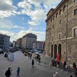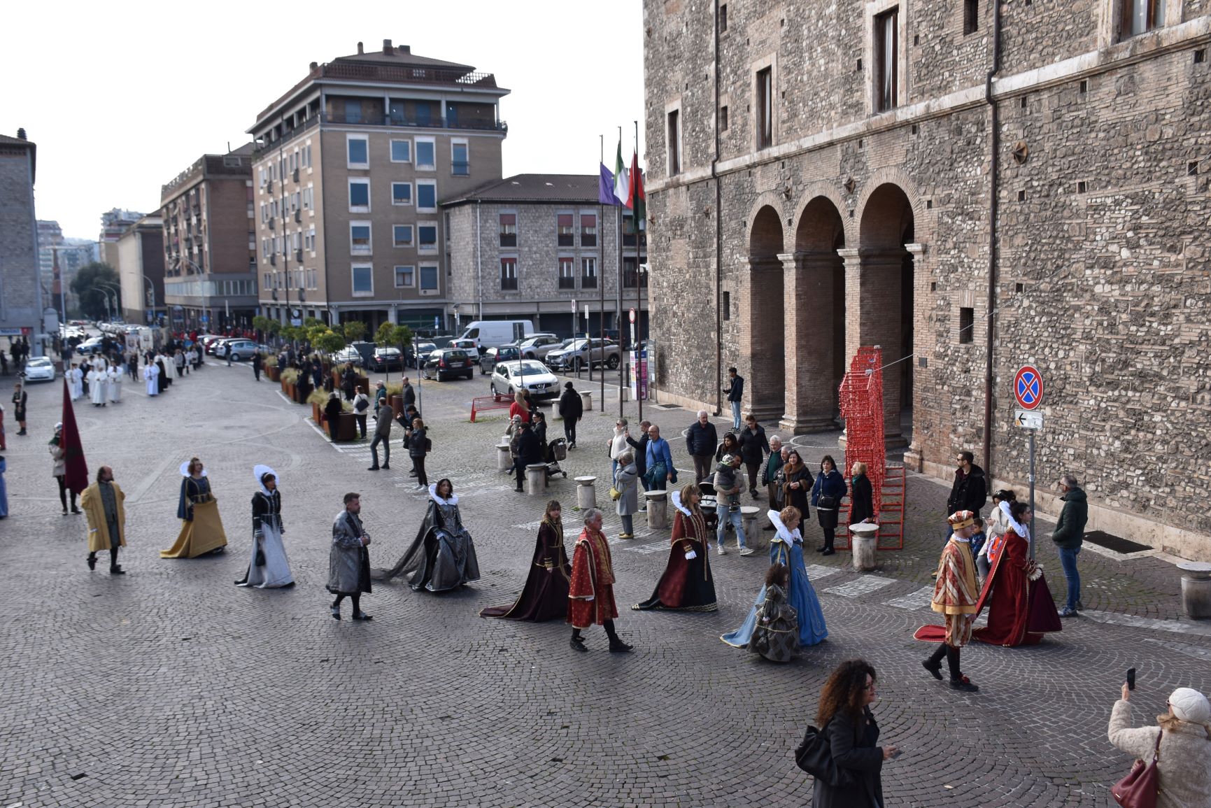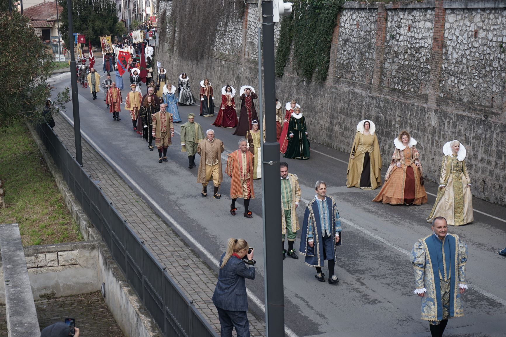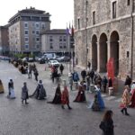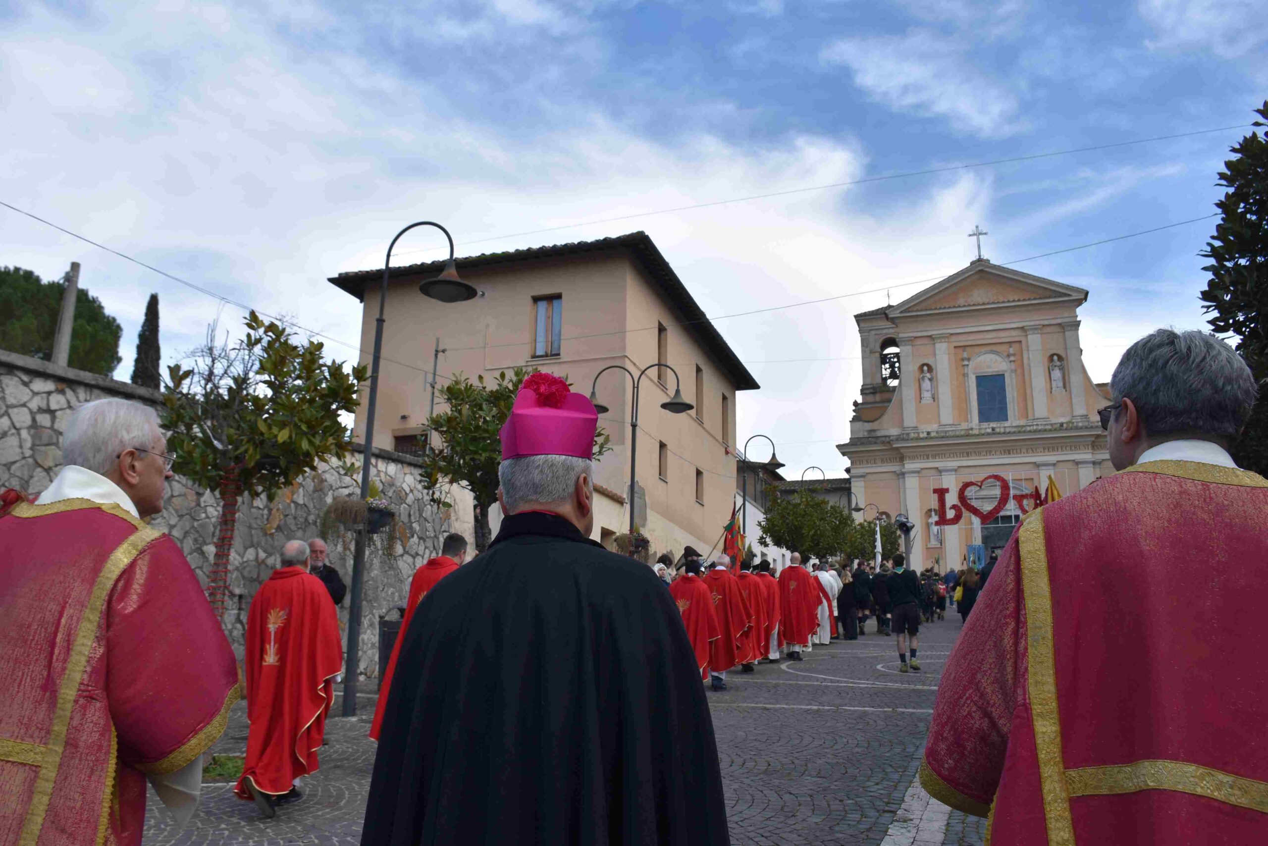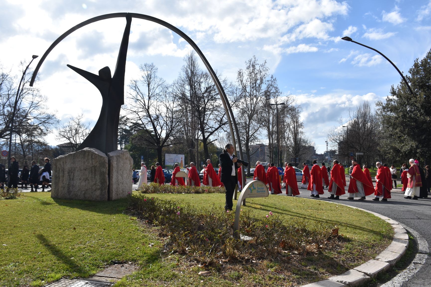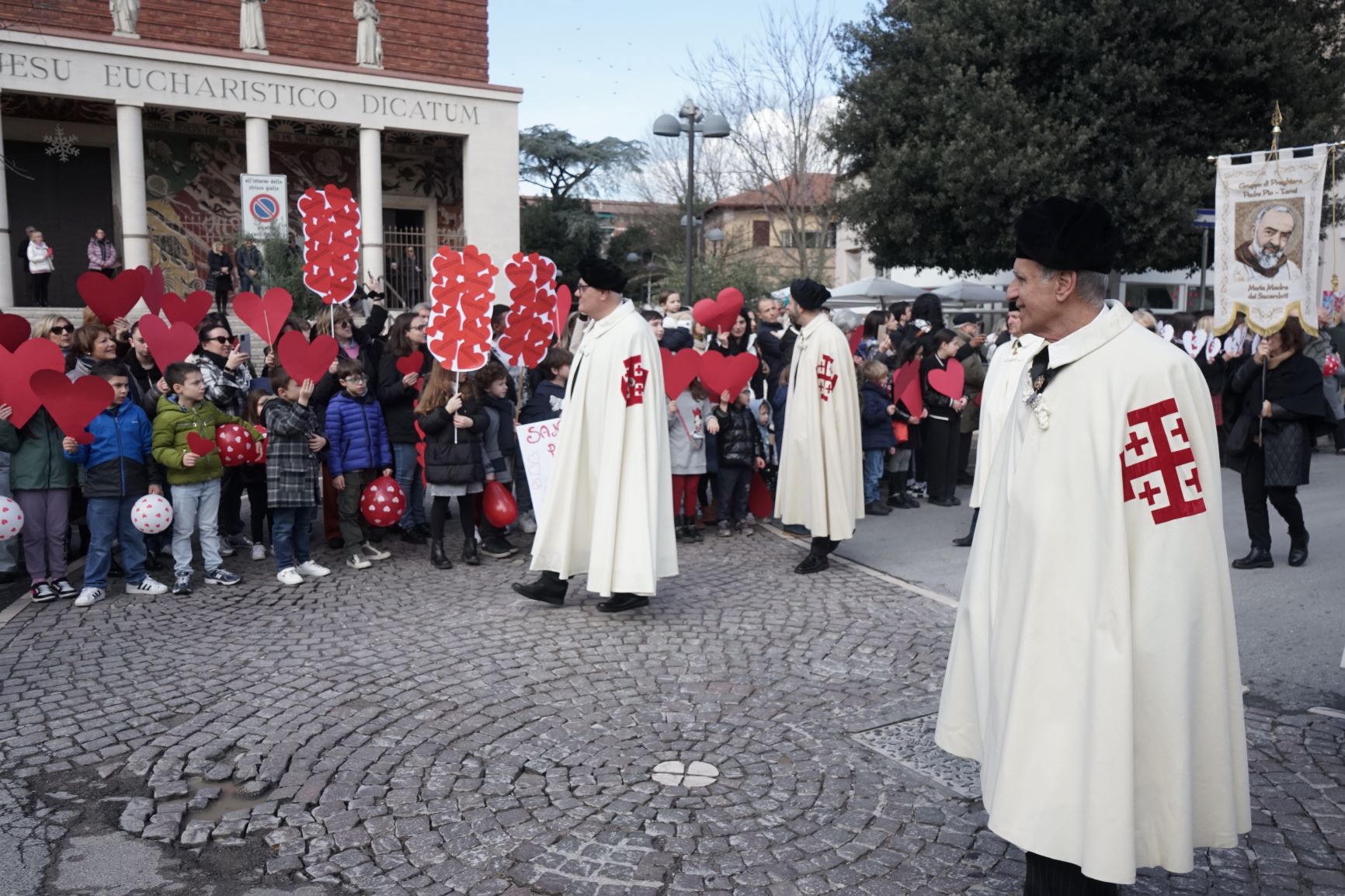 La processione è stata accompagnata dai gonfaloni del Comune, Regione e Provincia e da quelli delle confraternite, insieme ai rappresentanti di movimenti e associazioni diocesane, dalle istituzioni civili e militari presenti alla celebrazione del pontificale, dai figuranti in abiti storici del 1600 e dai tamburini e musici del terziere di Mezule di Narni. Sul sagrato c’è stato la preghiera del presidente dell’Azione Cattolica diocesana Rita Pileri: «San Valentino facci tornare al cuore delle cose! Rendi questa città capace di guardare con amore verso l’altro, verso le vie e le piazze perché siamo capaci di usarle con il rispetto con il quale trattiamo le nostre cose più importanti, quelle che vorremmo lasciare ai nostri figli. Fa in modo che questa città sia ancora capace di promuovere la cultura dello scambio, dell’ascolto e del dialogo, ne abbiamo bisogno per tornare a guardare al futuro, per non ripiegarci su noi stessi, per promuovere la partecipazione attiva per la ricerca del bene comune e della pace». IL TESTO INTEGRALE DELLA PREGHIERA