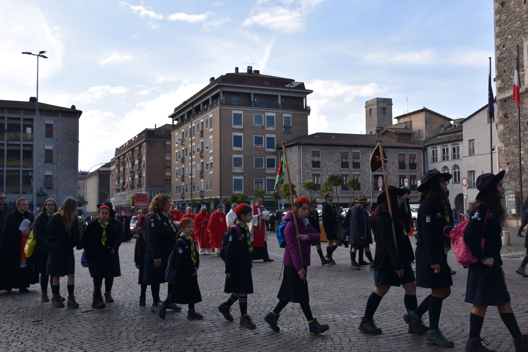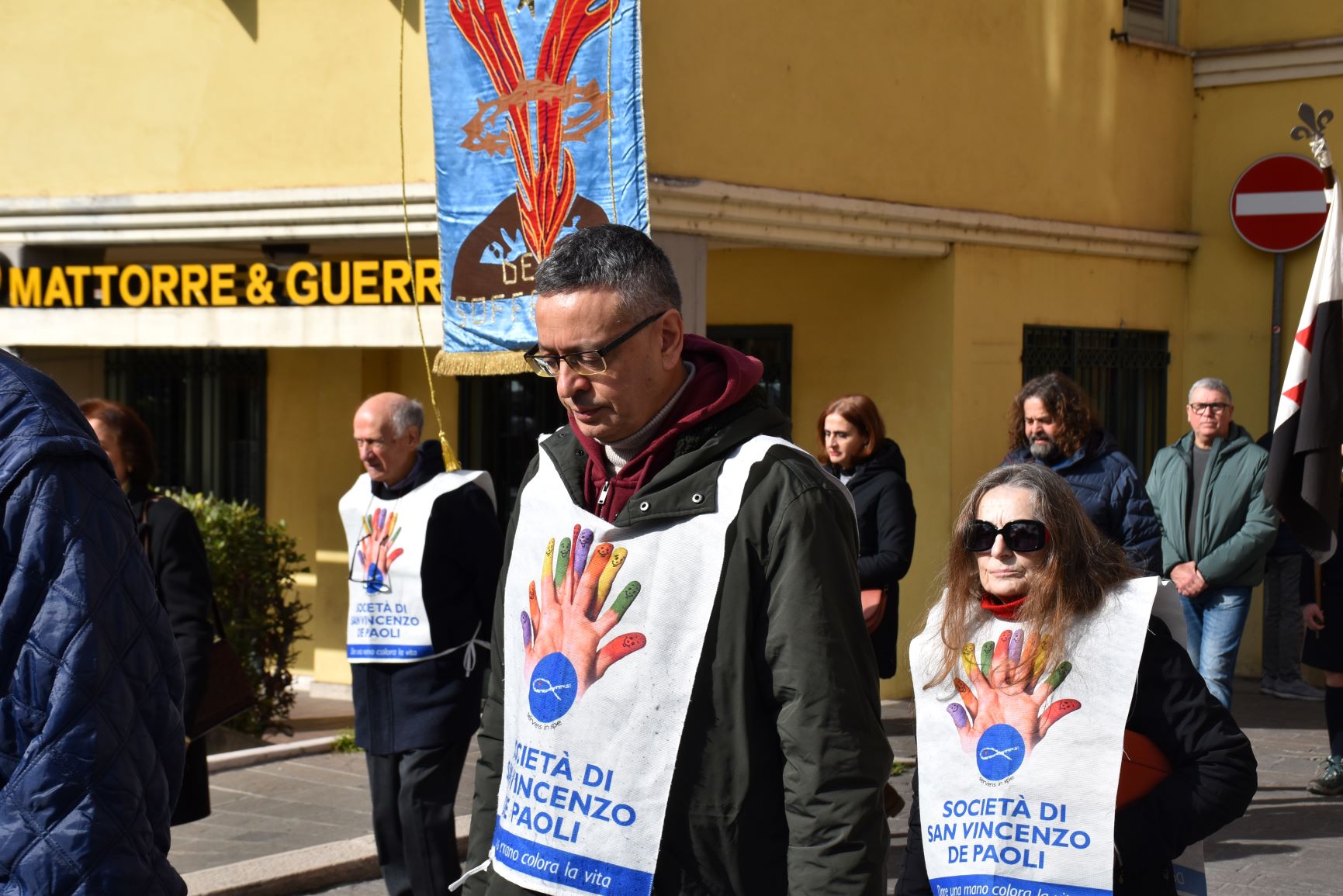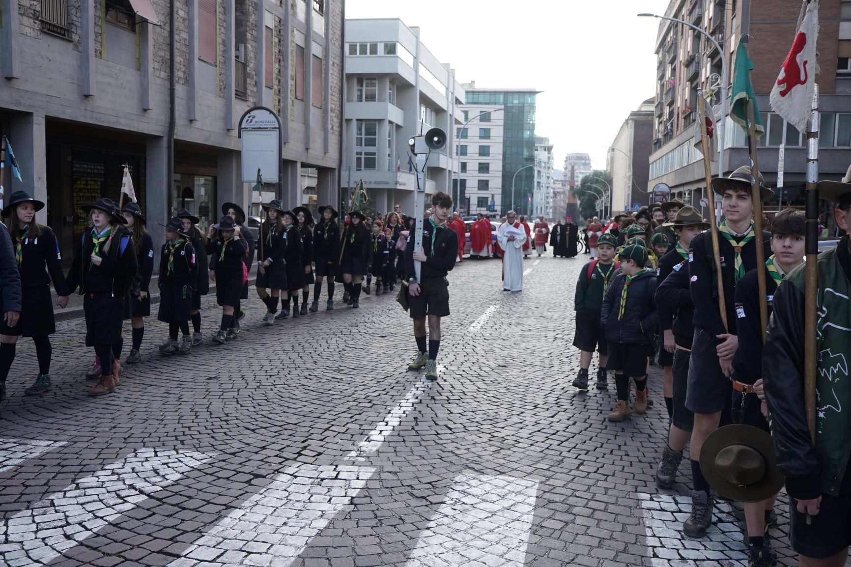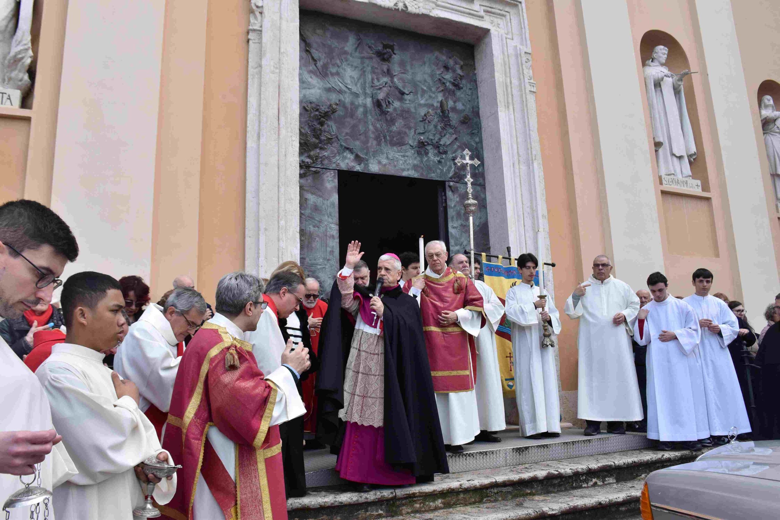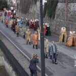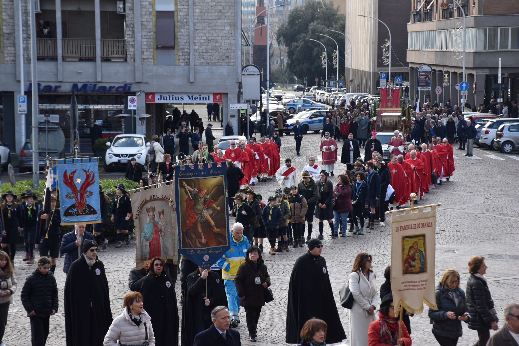 La processione è stata accompagnata dai gonfaloni del Comune, Regione e Provincia e da quelli delle confraternite, insieme ai rappresentanti di movimenti e associazioni diocesane, dalle istituzioni civili e militari presenti alla celebrazione del pontificale, dai figuranti in abiti storici del 1600 e dai tamburini e musici del terziere di Mezule di Narni. Sul sagrato c’è stato la preghiera del presidente dell’Azione Cattolica diocesana Rita Pileri: «San Valentino facci tornare al cuore delle cose! Rendi questa città capace di guardare con amore verso l’altro, verso le vie e le piazze perché siamo capaci di usarle con il rispetto con il quale trattiamo le nostre cose più importanti, quelle che vorremmo lasciare ai nostri figli. Fa in modo che questa città sia ancora capace di promuovere la cultura dello scambio, dell’ascolto e del dialogo, ne abbiamo bisogno per tornare a guardare al futuro, per non ripiegarci su noi stessi, per promuovere la partecipazione attiva per la ricerca del bene comune e della pace». IL TESTO INTEGRALE DELLA PREGHIERA